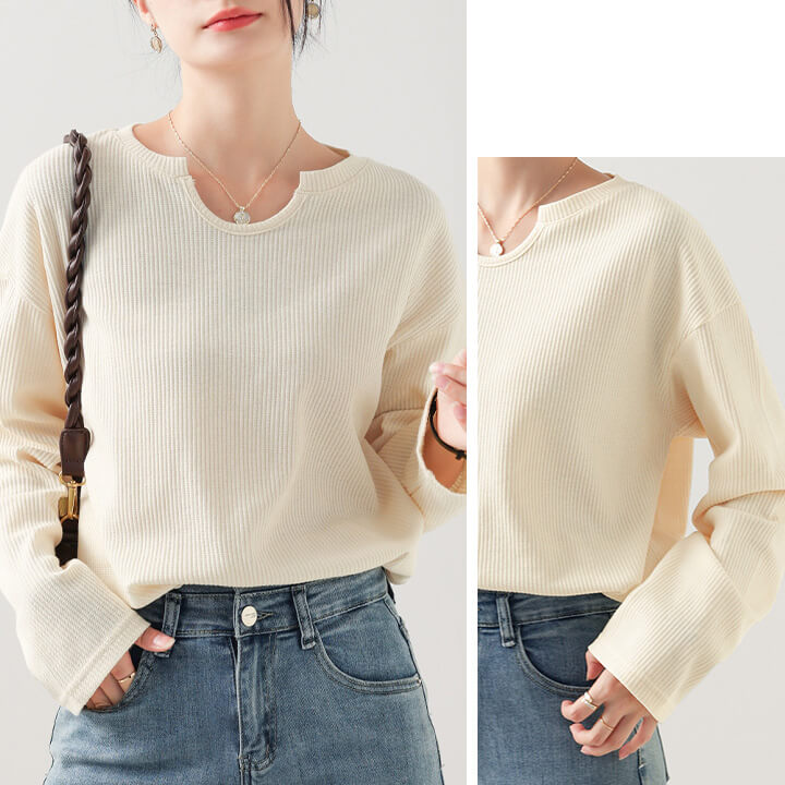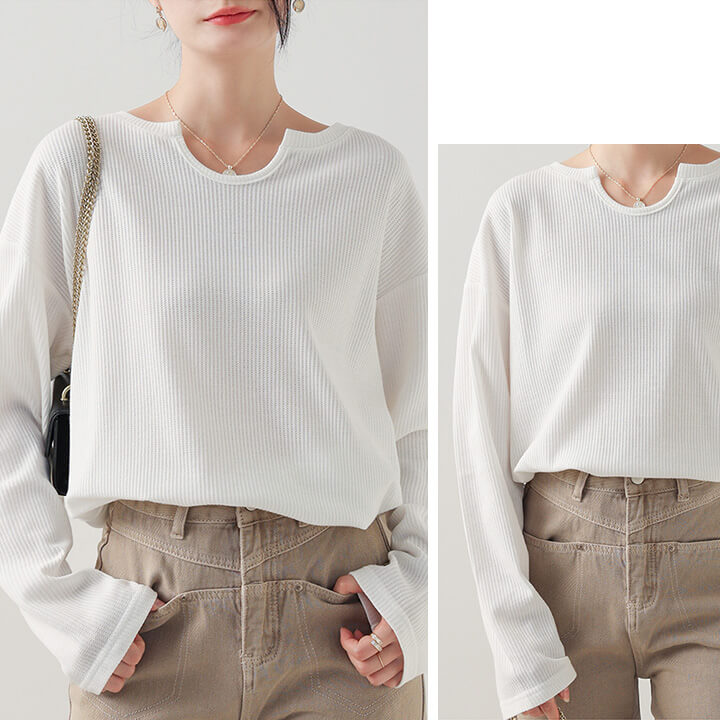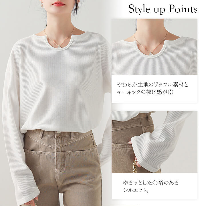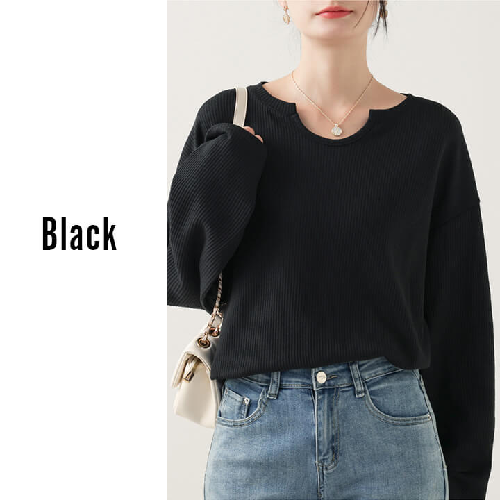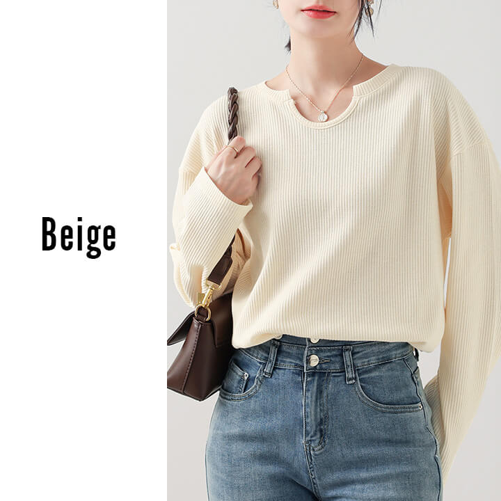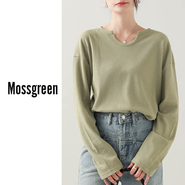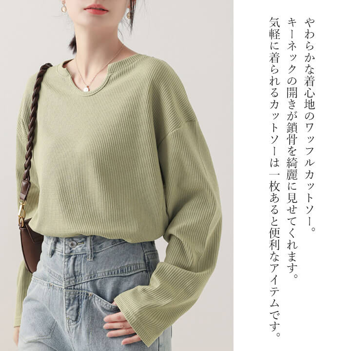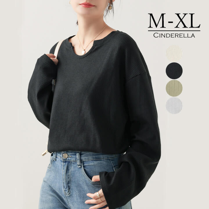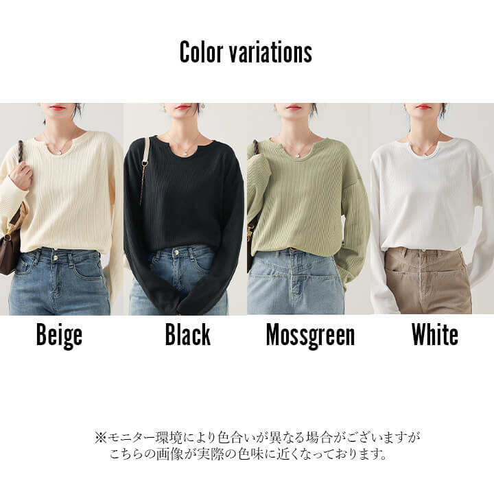 トップス レディース カットソー ミドル丈 着痩せ カジュアル 大きめ 大きいサイズ シルエット ゆったり 華奢見え シンプル 無地 大人可愛い 大人カジュアル やわらか 長袖 ベージュ 肌色 ブラッ