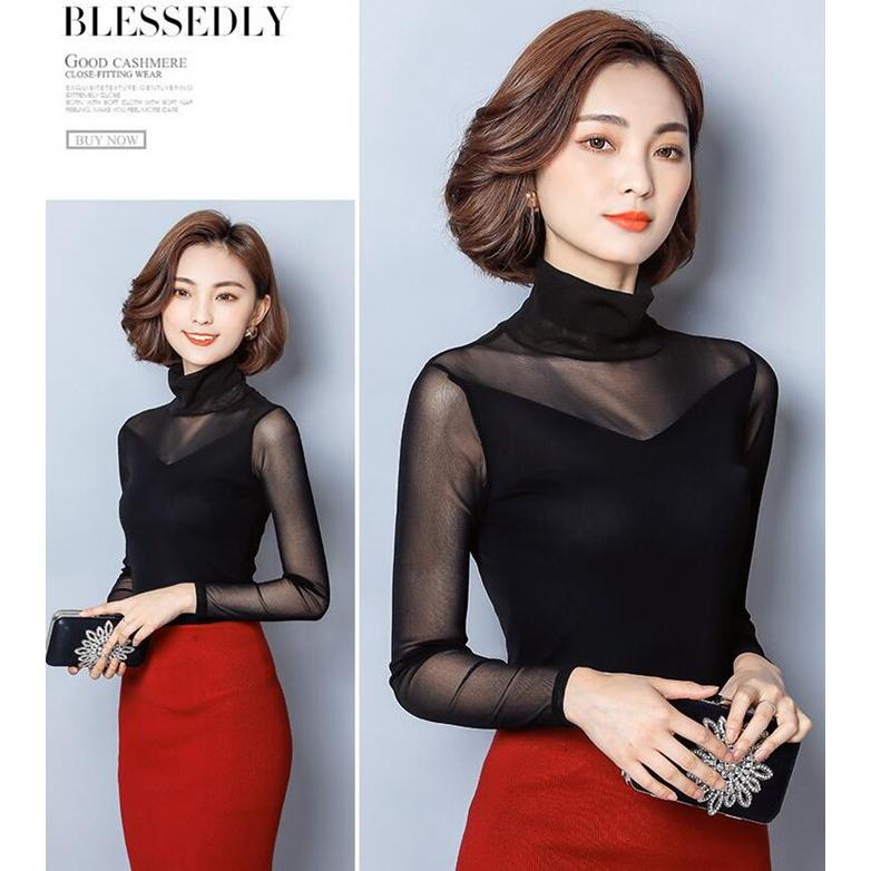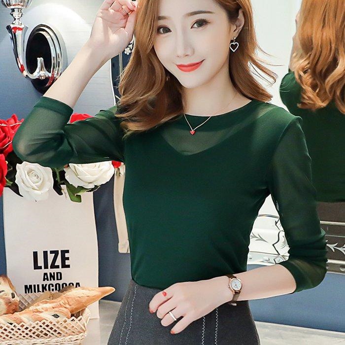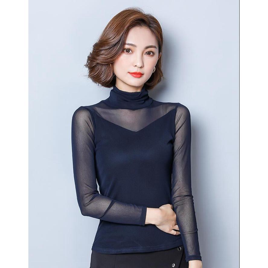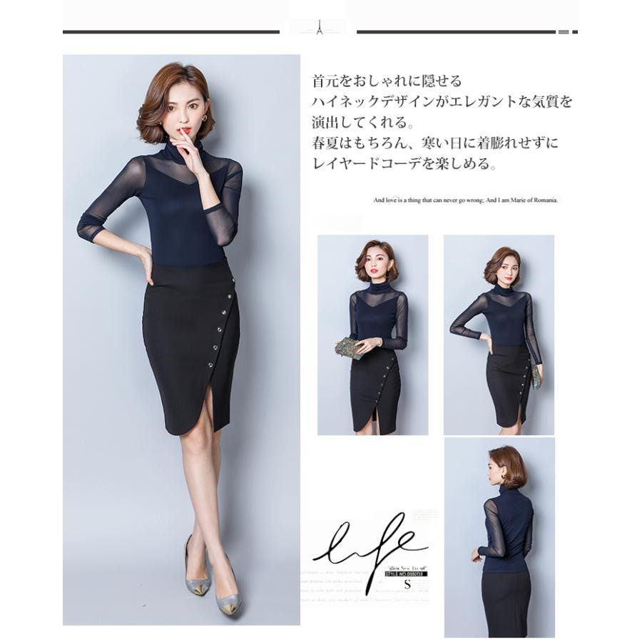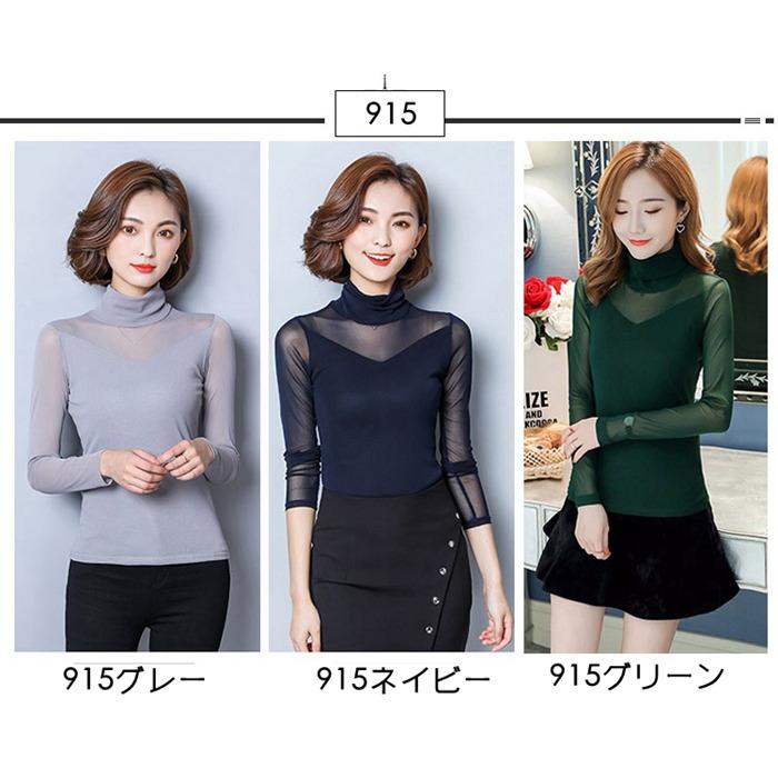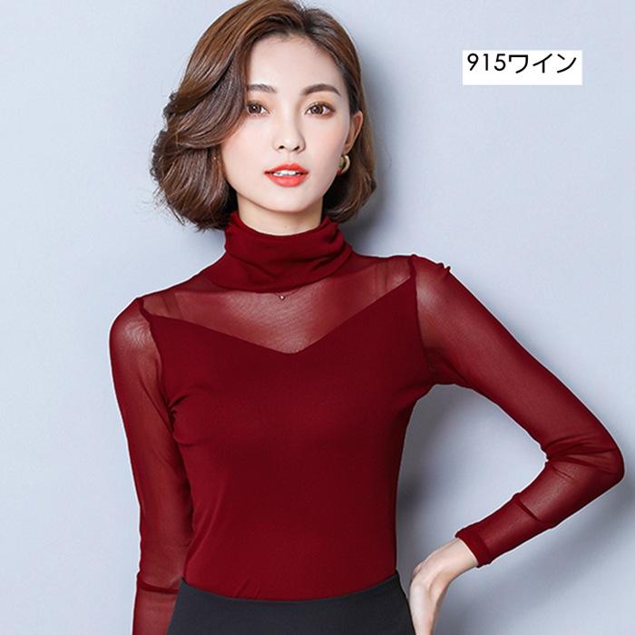 シースルー トップス インナー ハイネック Uネック カジュアル 無地 tシャツ 長袖tシャツ 春秋 レディース カットソー チュール 長袖