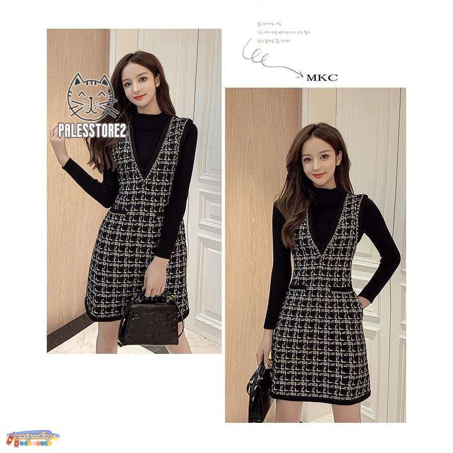 サロペットスカート レディース カジュアル ワンピース ジャンパースカート Vネック ツイード ショート丈 ガーリー レトロ 着回し 体型カバー 可愛い おしゃれ