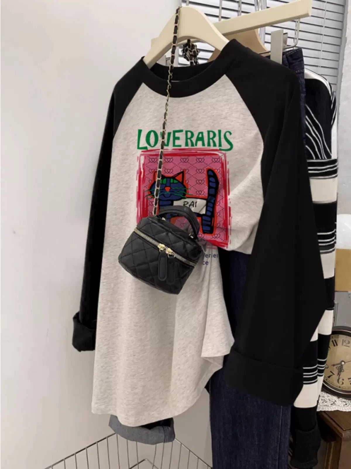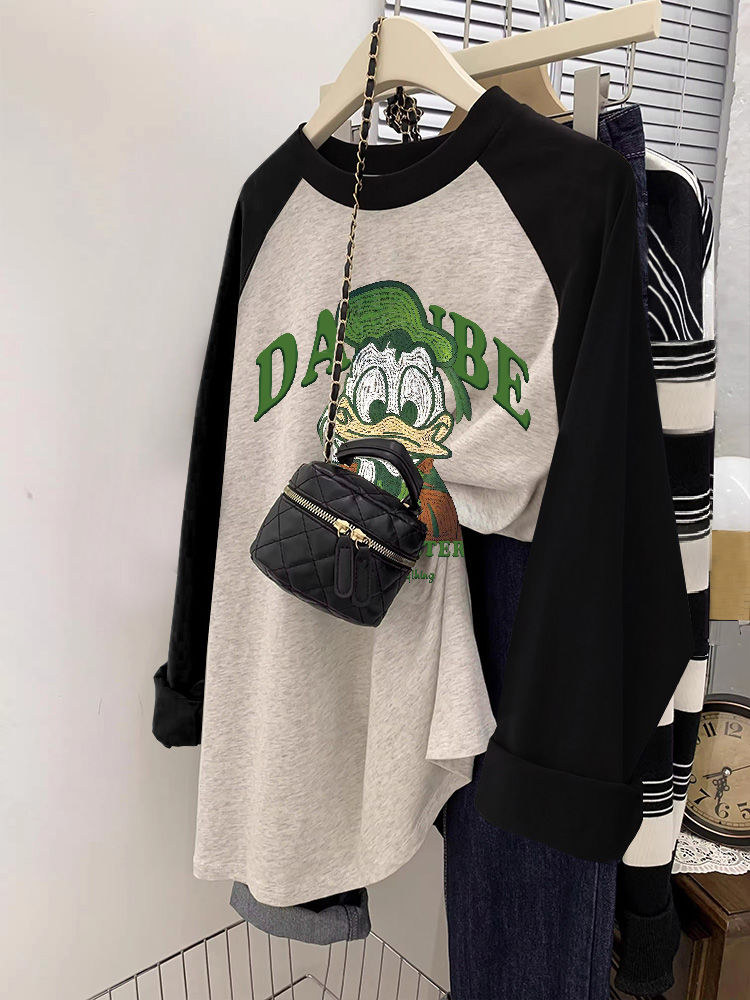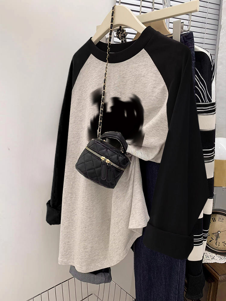本日の限定商品秋服 レディース 秋服 韓国 ロンT ロングtシャツ レディース ロングtシャツ レディース 長袖 アメリカンスタイル レトロ ベア 長袖Tシャツ カラーブロックボトムシャツ 薄手突っ張