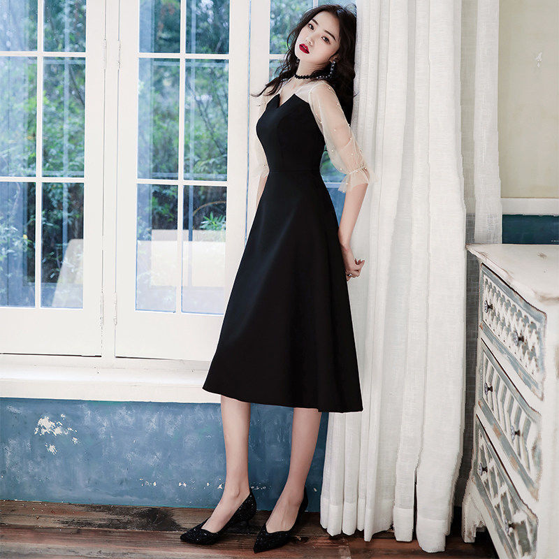 パーティードレス ドレス 黒のイブニングドレスの女性フランスの年次総会の誕生日のドレス ドレス