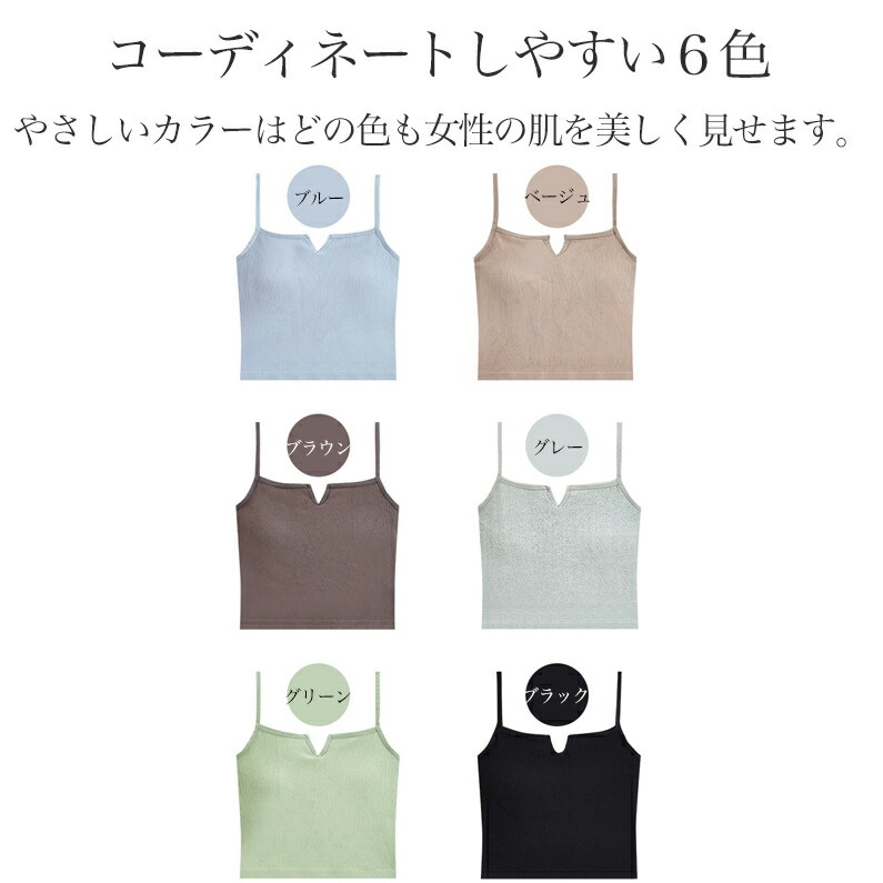 キャミソール カップ付き ショート丈 レディース インナー 下着 肌着 ノースリーブ アンダーウェア ノンワイヤーブラ ブラトップ ゆったり 汗取り かわいい 無地 大きいサイズ