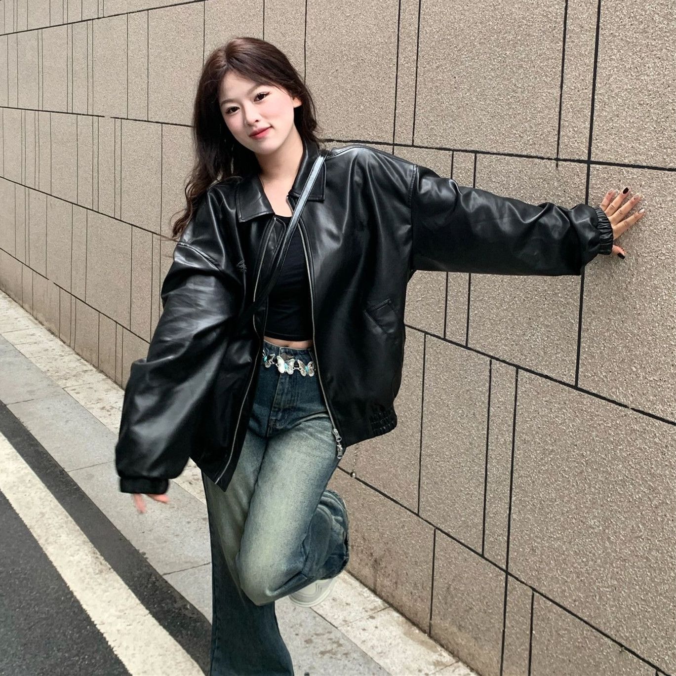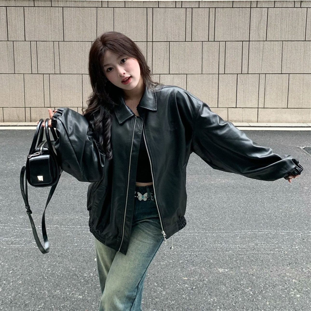 人气新作アウター ブラック PUレザー レザージャケット ジャケット レディース 韓国ファッション 流行りトップスショット丈 革ジャンレディース 着痩せ 秋ジャケットレトロ ルーズ 百掛け バイクウェ