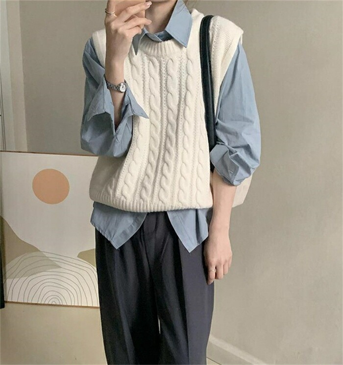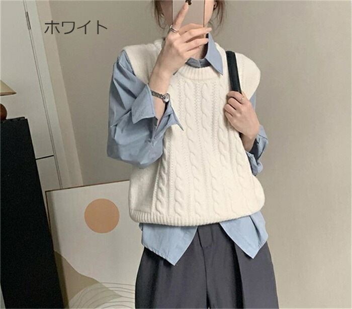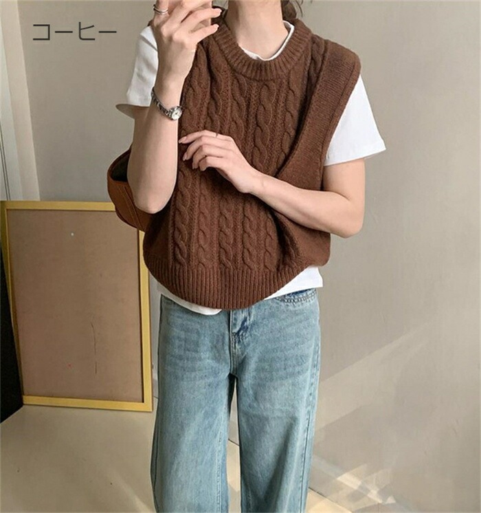 ニット ベスト レディース ニットベスト ジレ クルーネック トップス ノースリーブ リブ編み ニットトップス セーター 重ね着 ニットセーター 冬 秋 アウター インナー 無地 ショート丈 レイヤー