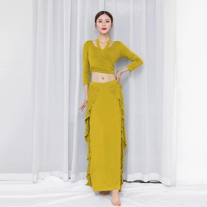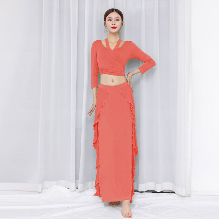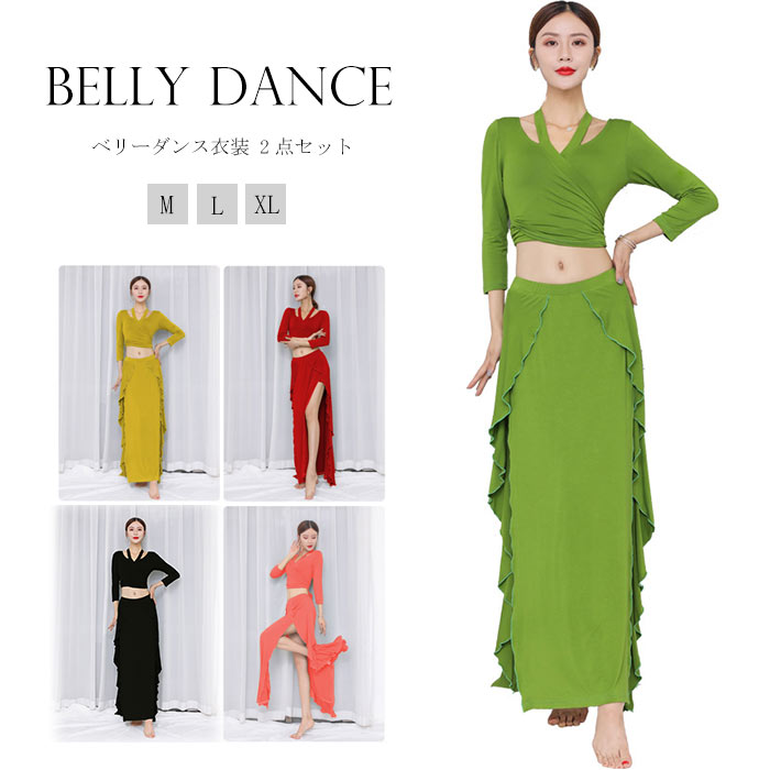 全8色 レディース セット ベリーダンス衣装 練習着 社交ダンス ダンスウェア 舞台衣装 ステージ衣装 ベリーダンス トップス 衣装 ヒップスカーフ 上下セット レッスン着 ロング丈 ダンスウェア ス