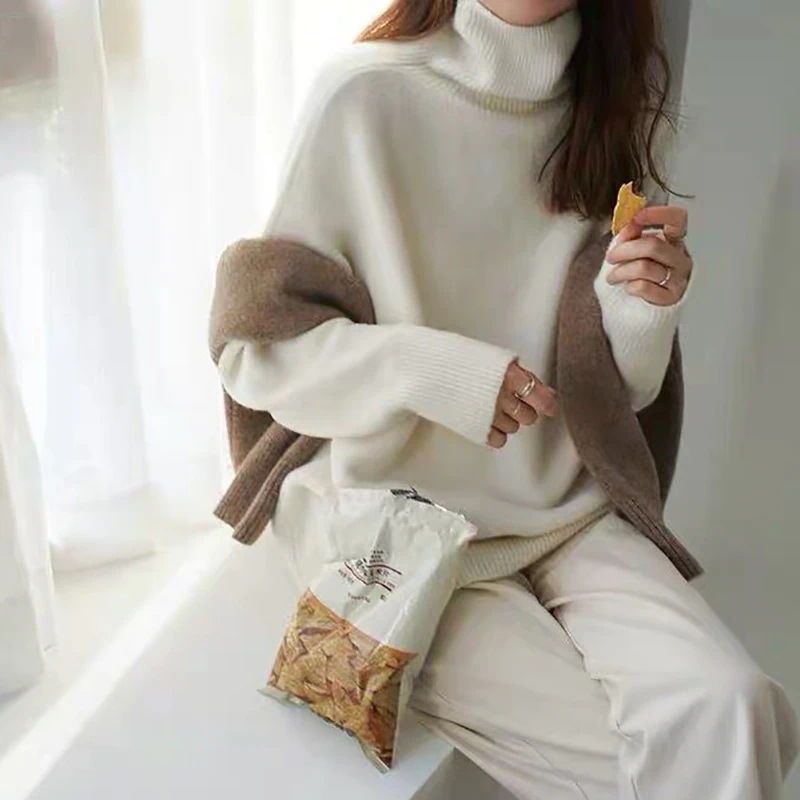 秋冬新作ニットセーター レディース 暖かいインナーリブニットカシミヤタッチニットトップス長袖 大きいサイズ 伸縮性がいい通勤百掛け 厚手 ハイネック ニット服 セーターハイカラベーシックニット ロンT
