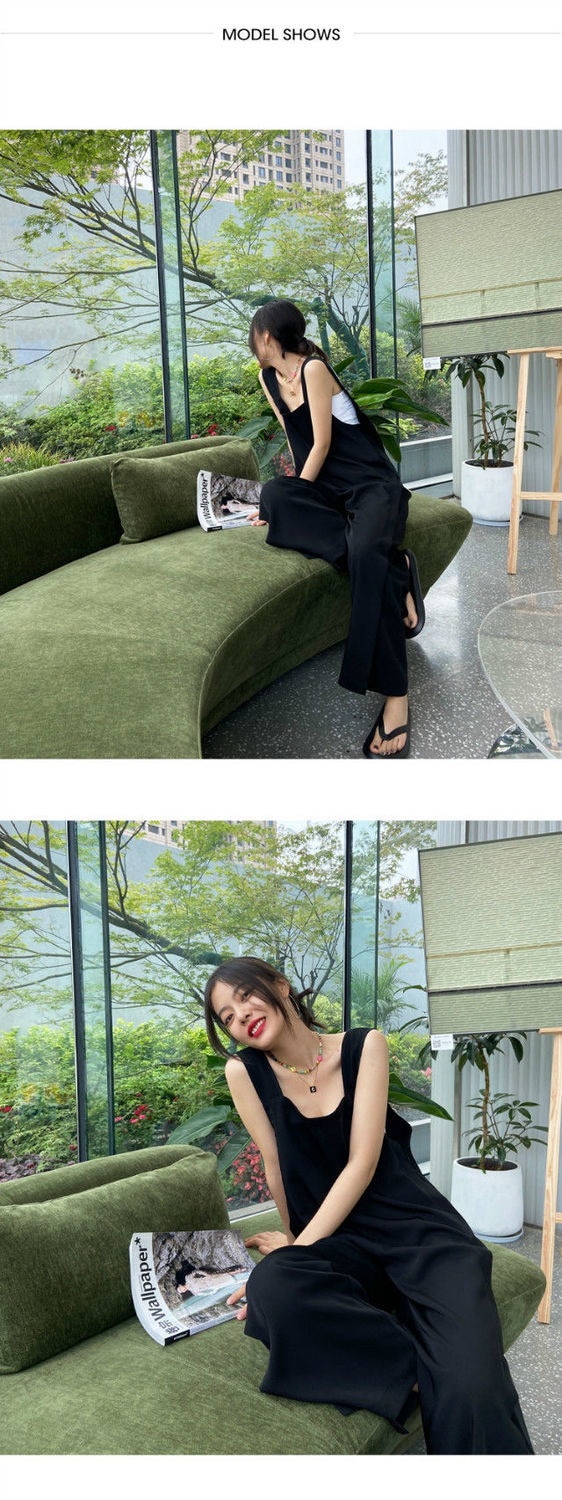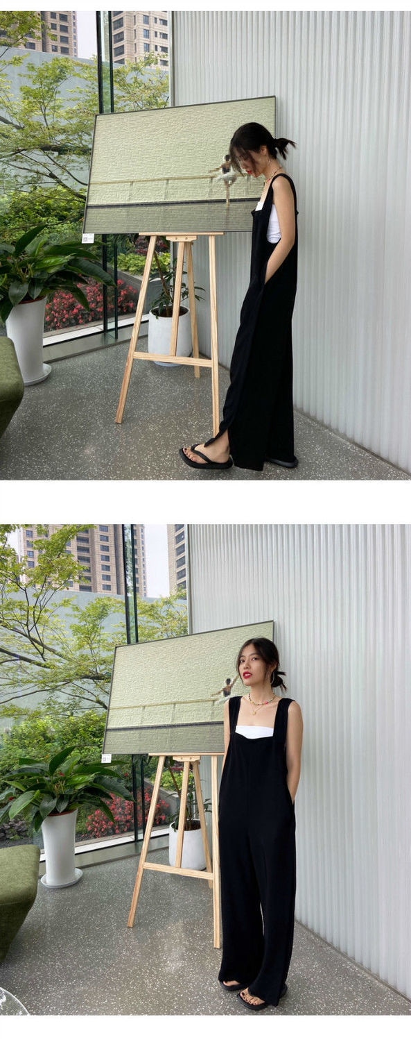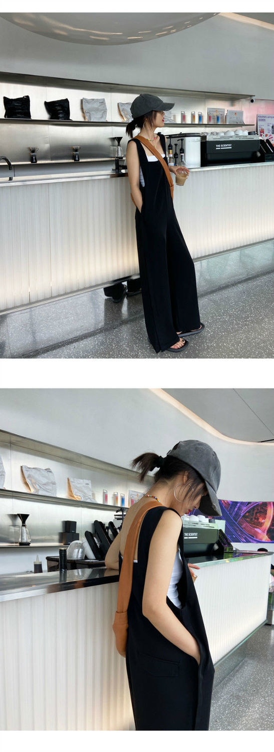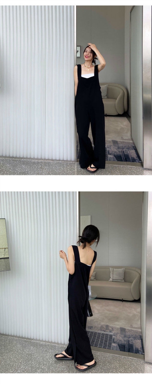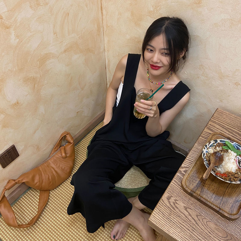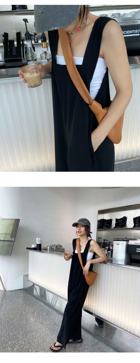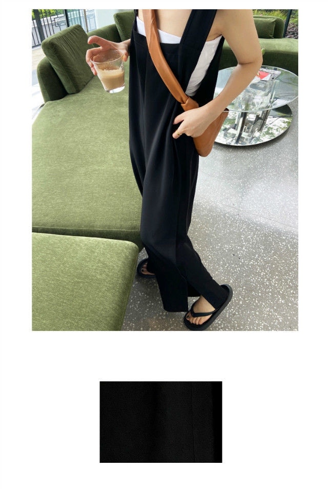 サロペット オールインワン オーバーオール 裾スリット オールインワンサロペットパンツ ワイドパンツ サロペット春 夏 秋 ロング丈 ワイド パンツ 落ち感 きれいめ キャミワンピース
