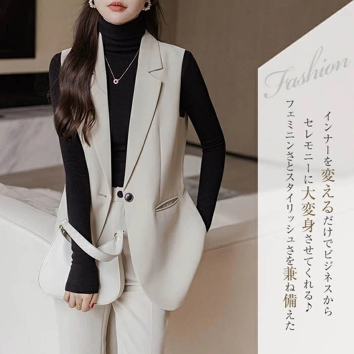 セットアップ 2点セット レディース スーツ パンツスーツ ベスト ジレ&テーパードパンツ セレモニー キレイめ ビジネススーツ 通勤スーツ フォーマル 入学式 卒業式 入園式 卒園式 着痩せ 通勤
