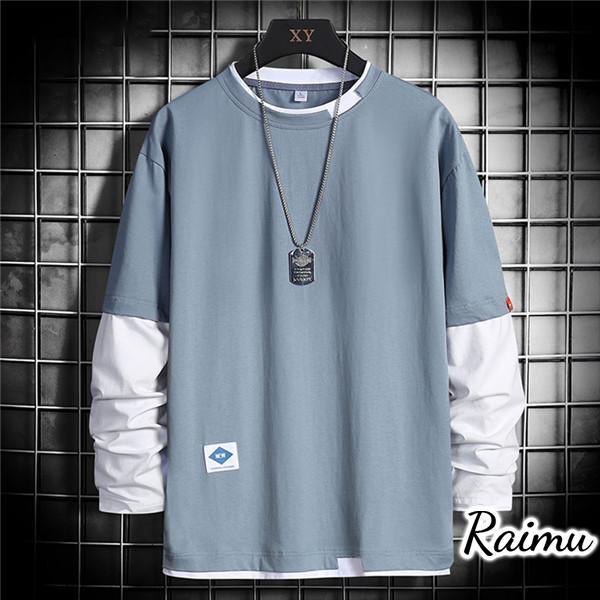 Tシャツ メンズ 長袖 ロングTシャツ ロンT 長袖Tシャツ カットソー 重ね着 通学 春秋 大きい 体型カバー 無地 おしゃれ Tシャツ
