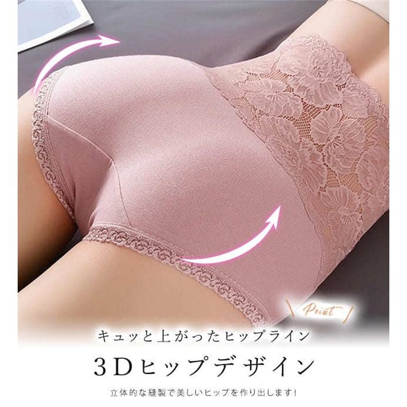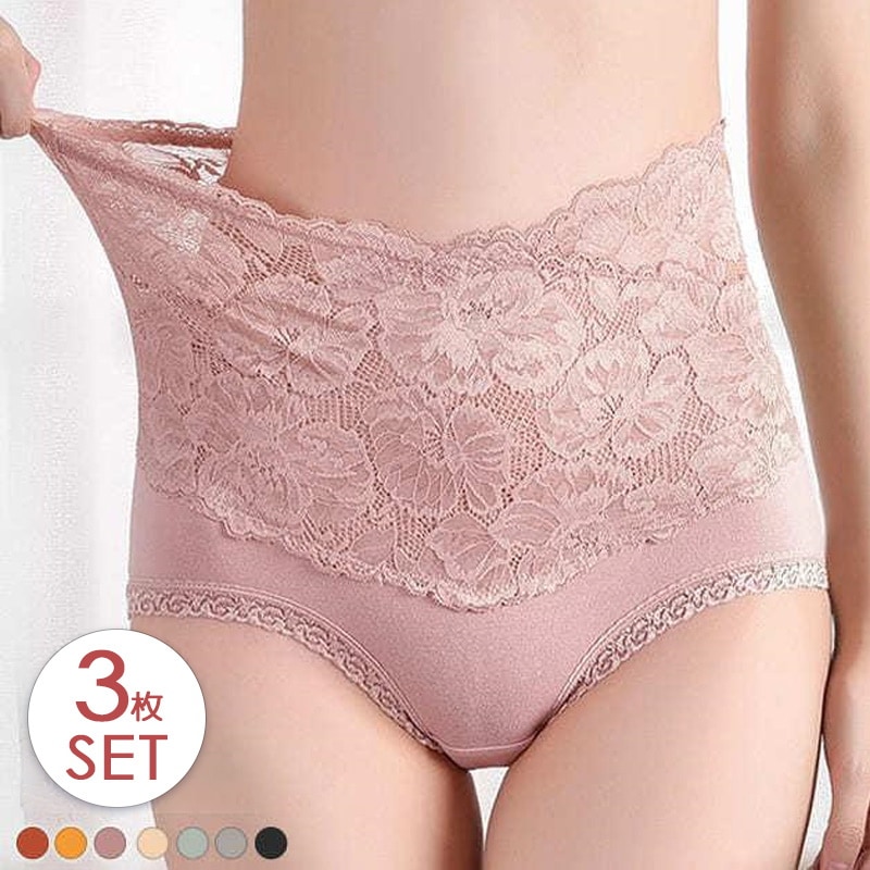 ショーツ3枚セット ハイウエスト レースショーツ パンティー 綿 コットン レディース 深ばき 下着 ショーツ 股上深め ヒップアップ効果総 大きいサイズ