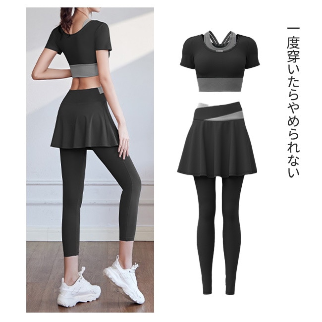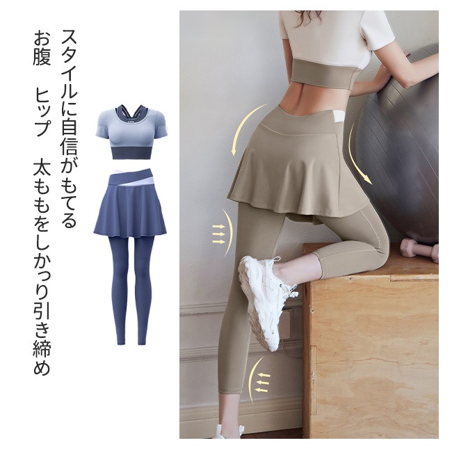 ヨガウエア 2点セット レディース レギンス ストレッチ フィット 美脚 吸汗 速乾 伸縮上下セット スポーツウェア 着痩せ おしゃれ