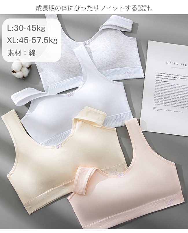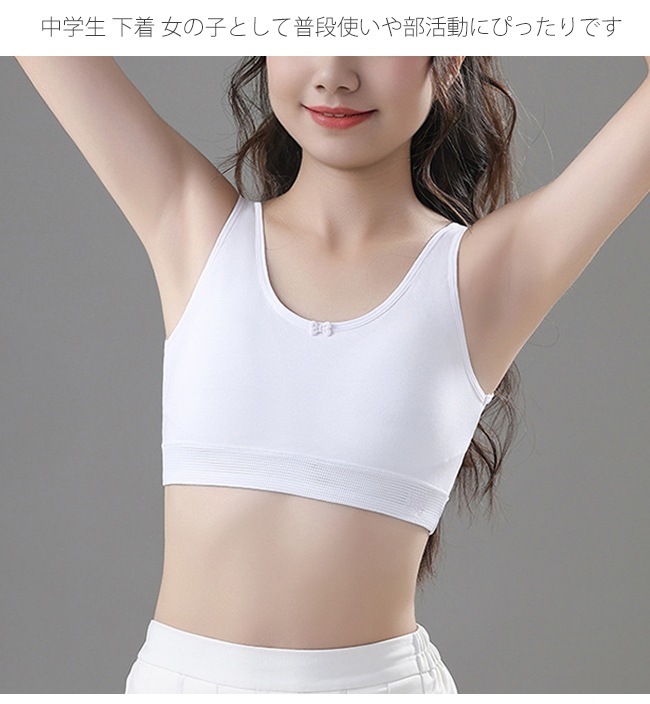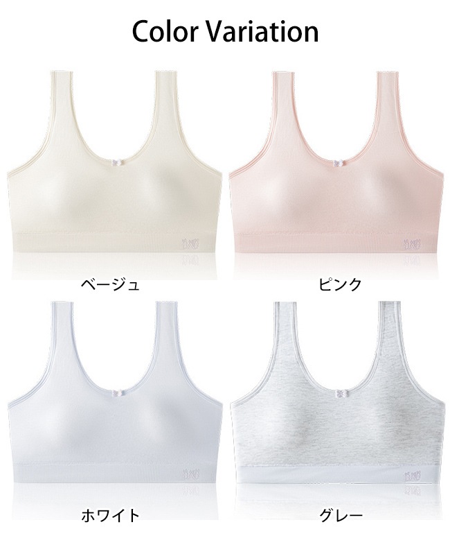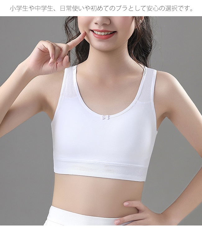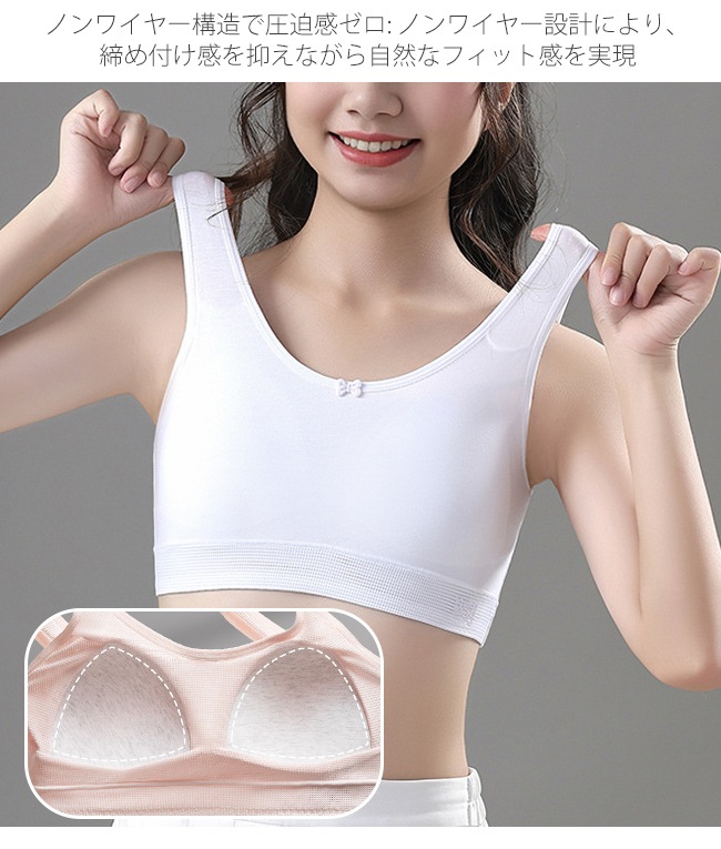 ジュニアブラ ブラジャー スポーツブラ ノンワイヤ ナイトブラ 下着 綿 パット付き キッズブラー インナー 青春期 成長期 部活 中学生 子供用 小学生 女の子