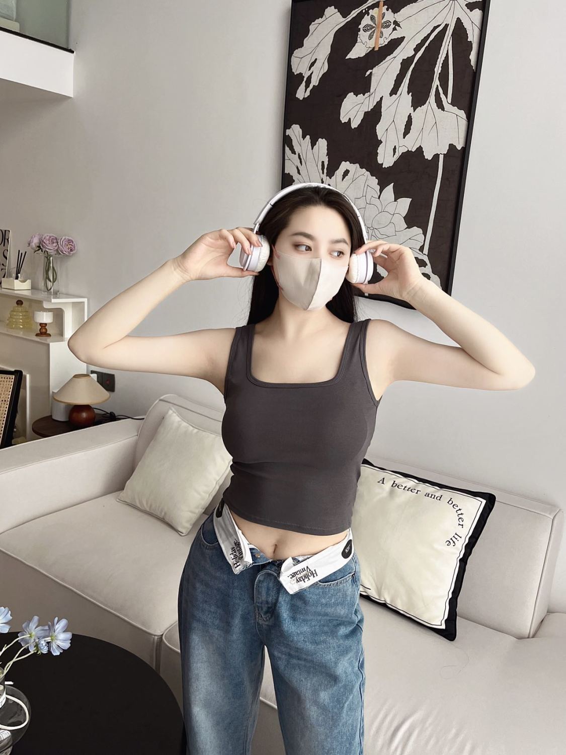 デニムパンツ ビジュー付き