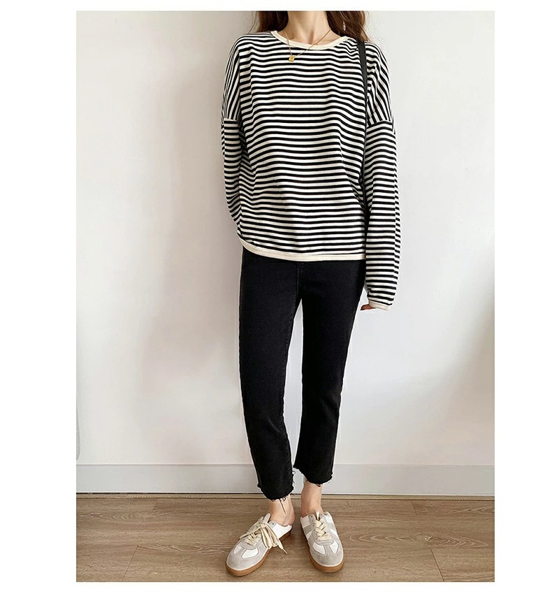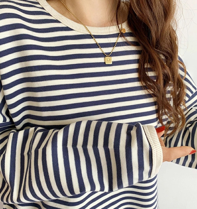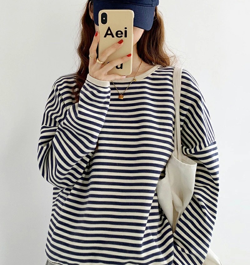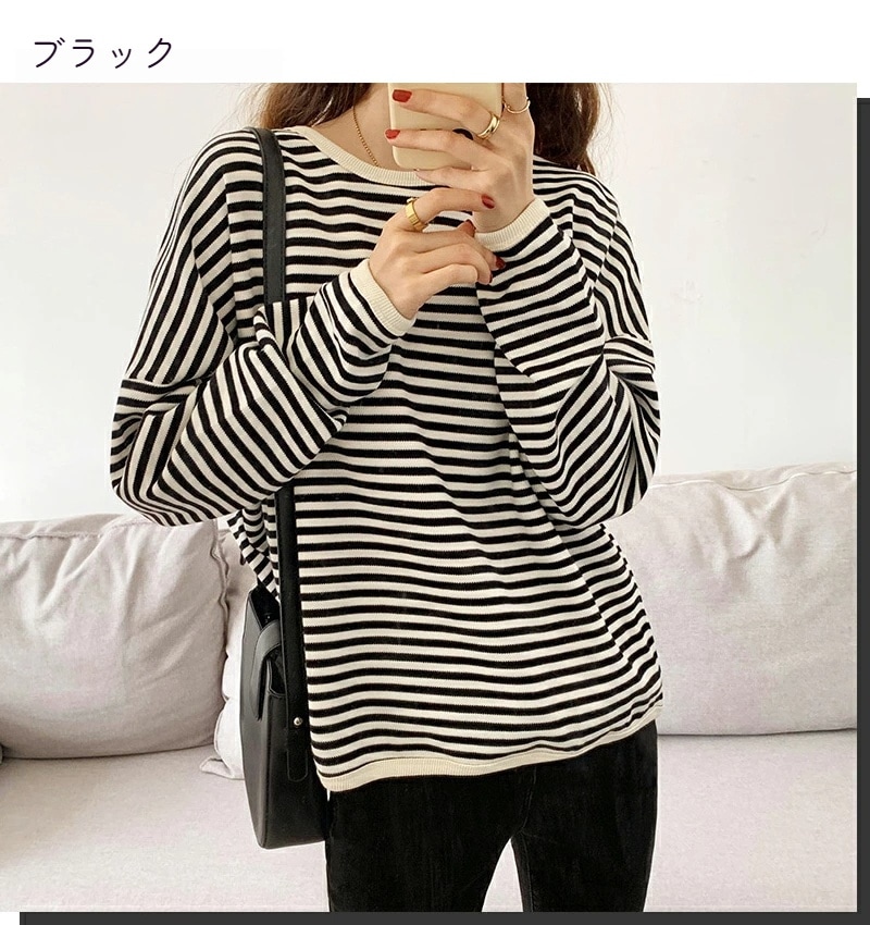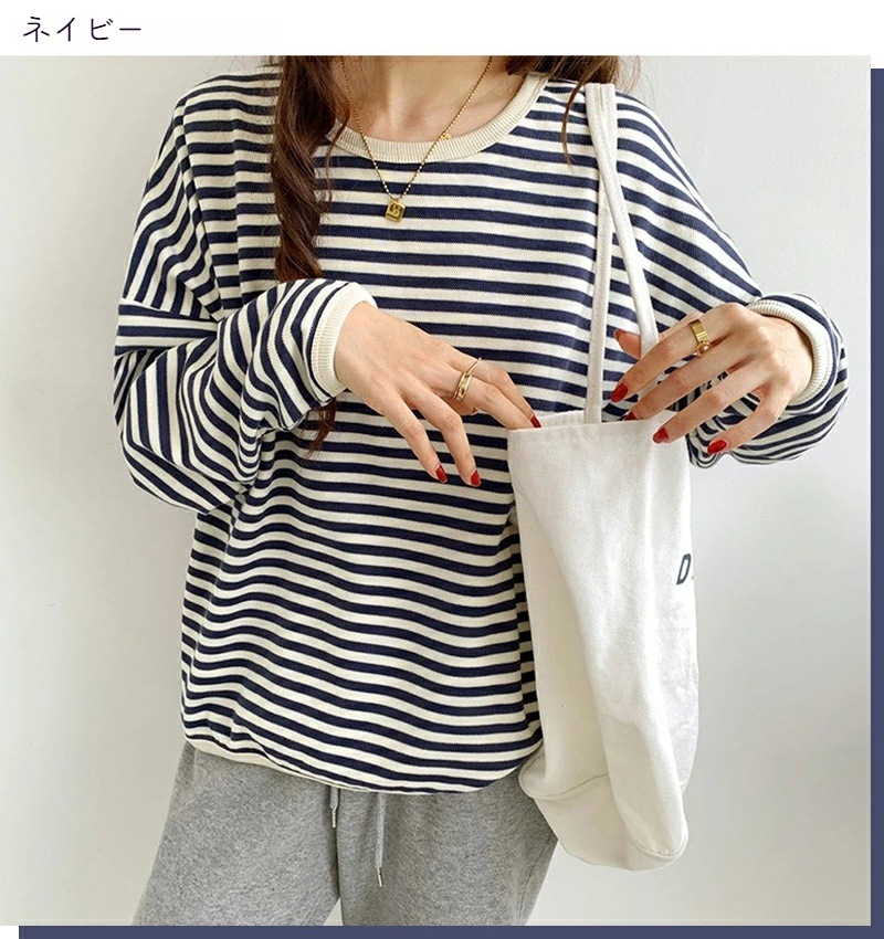 パイピング ボーダー カットソー 全3色 細縞 ラウンドネック オブロングネック ボートネック トップス 長袖 レディース カジュアル ナチュラル Tシャツ インナー オールシーズン 春 秋 冬 薄手