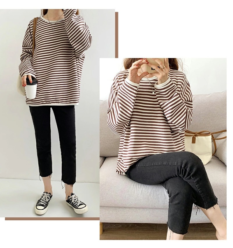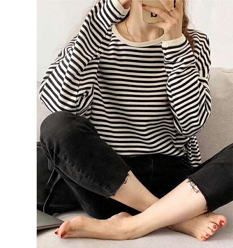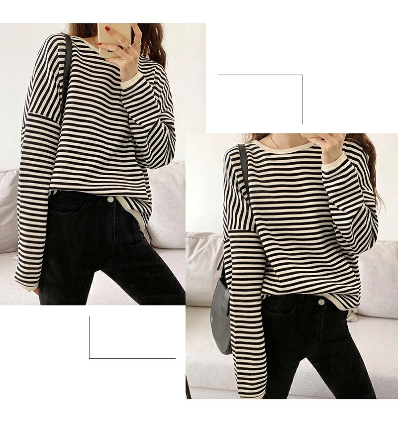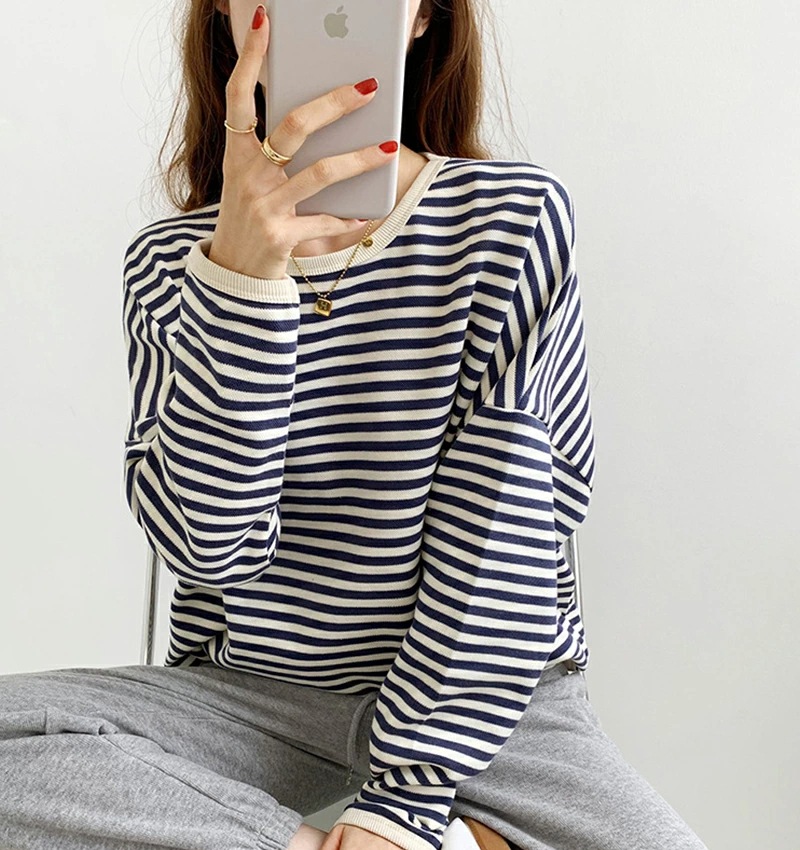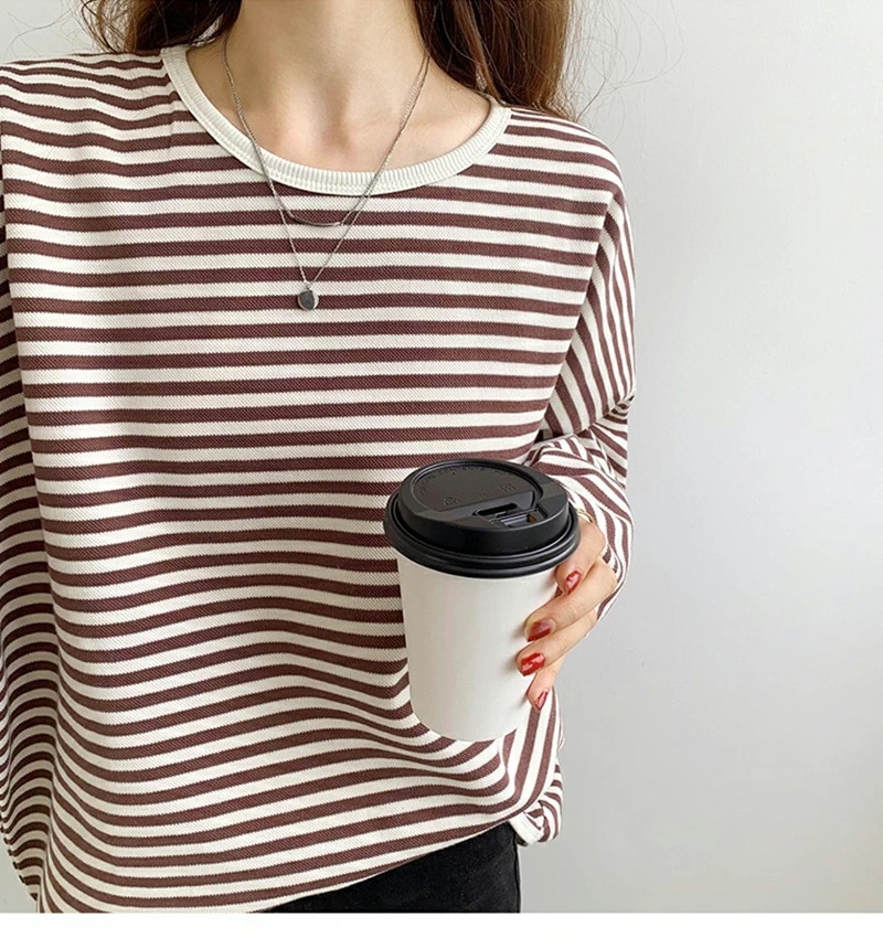 パイピング ボーダー カットソー 全3色 細縞 ラウンドネック オブロングネック ボートネック トップス 長袖 レディース カジュアル ナチュラル Tシャツ インナー オールシーズン 春 秋 冬 薄手