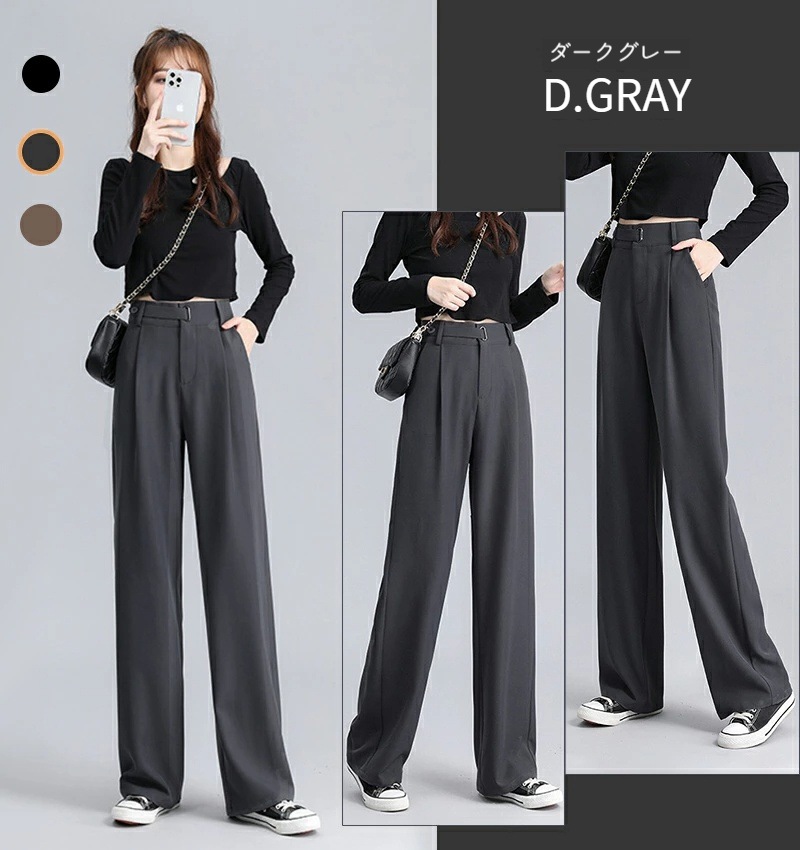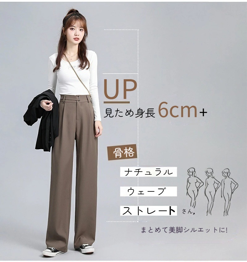 ハイウエスト 美脚 脚長 ストレートパンツ レディース ボタンストラップ ワイドパンツ 女性 ボトムス ワイド パンツ ハイウエストパンツ ズボン 長ズボン ロングパンツ スリム スタイルアップ