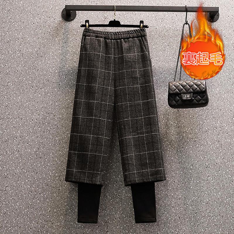 品質いいな新品 ガウチョパンツ レディース ワイドパンツ フェイクレイヤード ボトムス 暖かい 裏起毛 肌触り ルームウェア カジュアル 体型カバー 可愛い 秋冬