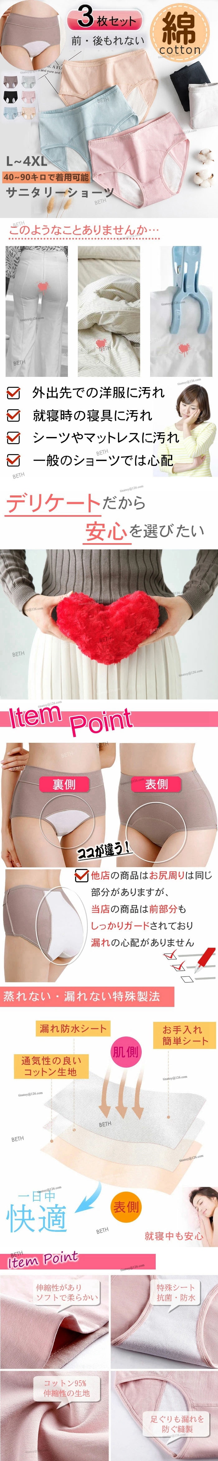 サニタリーショーツ2セット 3枚セット サニタリー サニタリーショーツ 前漏れ防止 後ろ漏れ防止 漏れないショーツ 大きいサイズ 夜用ショーツ 生理ショーツ 多い日用 サニタリー レディース