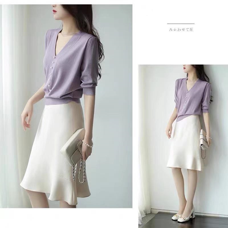 ニットトップス レディース Vネック 長袖 春 ニットセーター 無地 ボタン飾り ゆったりプルオーバー オシャレ 大人ニットインナー ニット