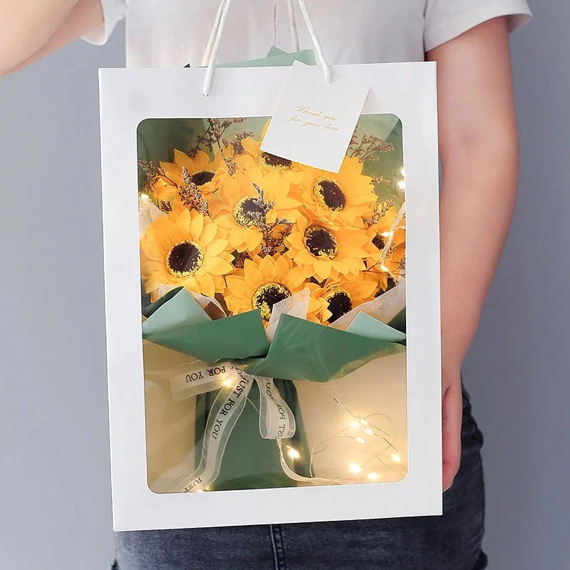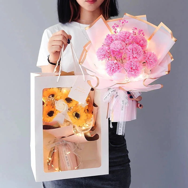 3日出荷ソープフラワー ギフト 人気 花束 誕生日プレゼント クリアボックス メッセージカード付き 手提げ付き 枯れない 石鹸花 女性 父の日 敬老の日 バレンタインデー クリスマス 新 結婚