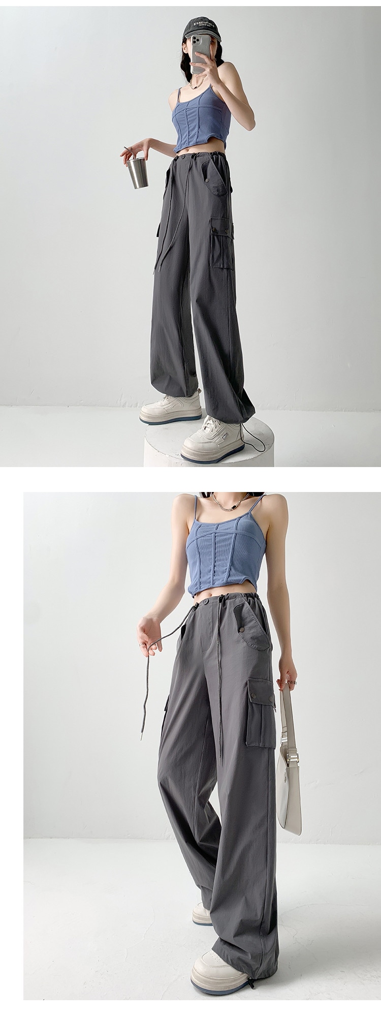 B4U カーゴパンツ レディース パンツ 多ポケット 軽量 ファッション 春夏 韓国ファッション ズボン おしゃれ 多機能 かわいい 快適 高耐久性 プレゼント