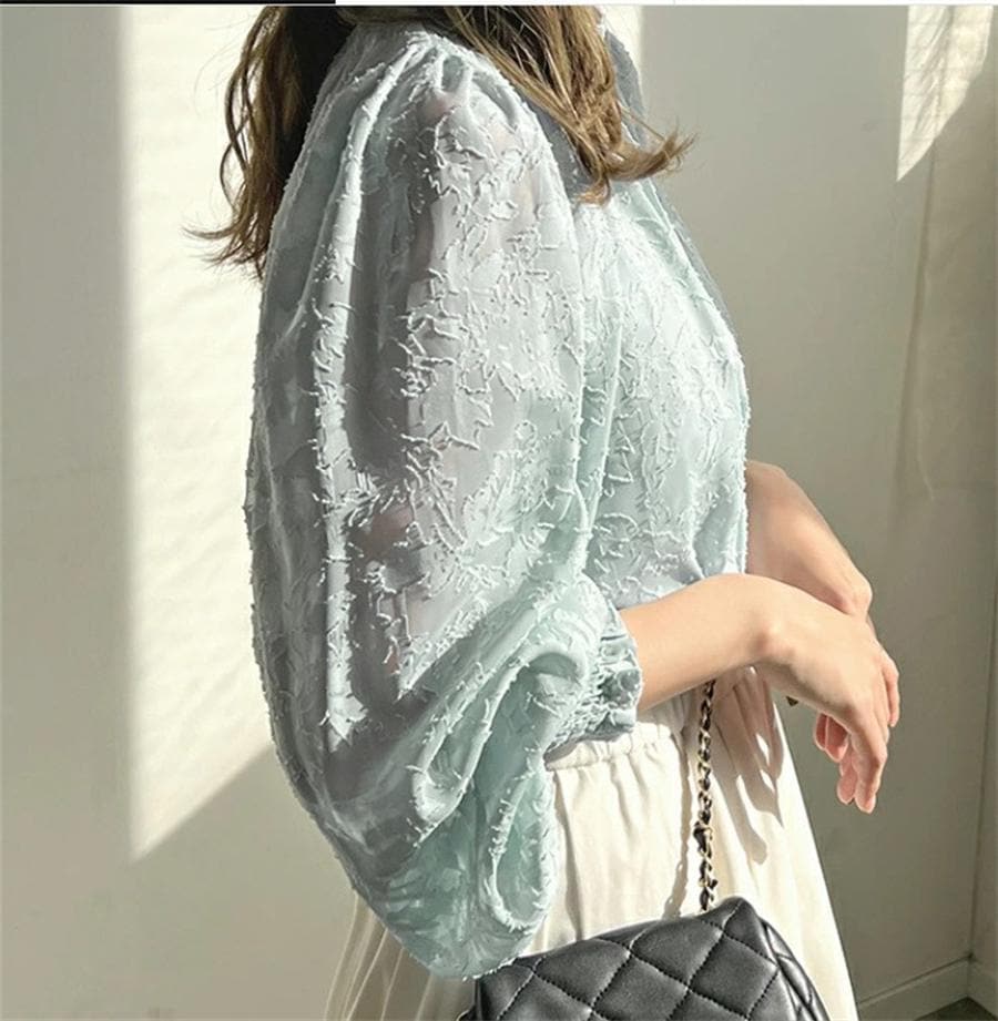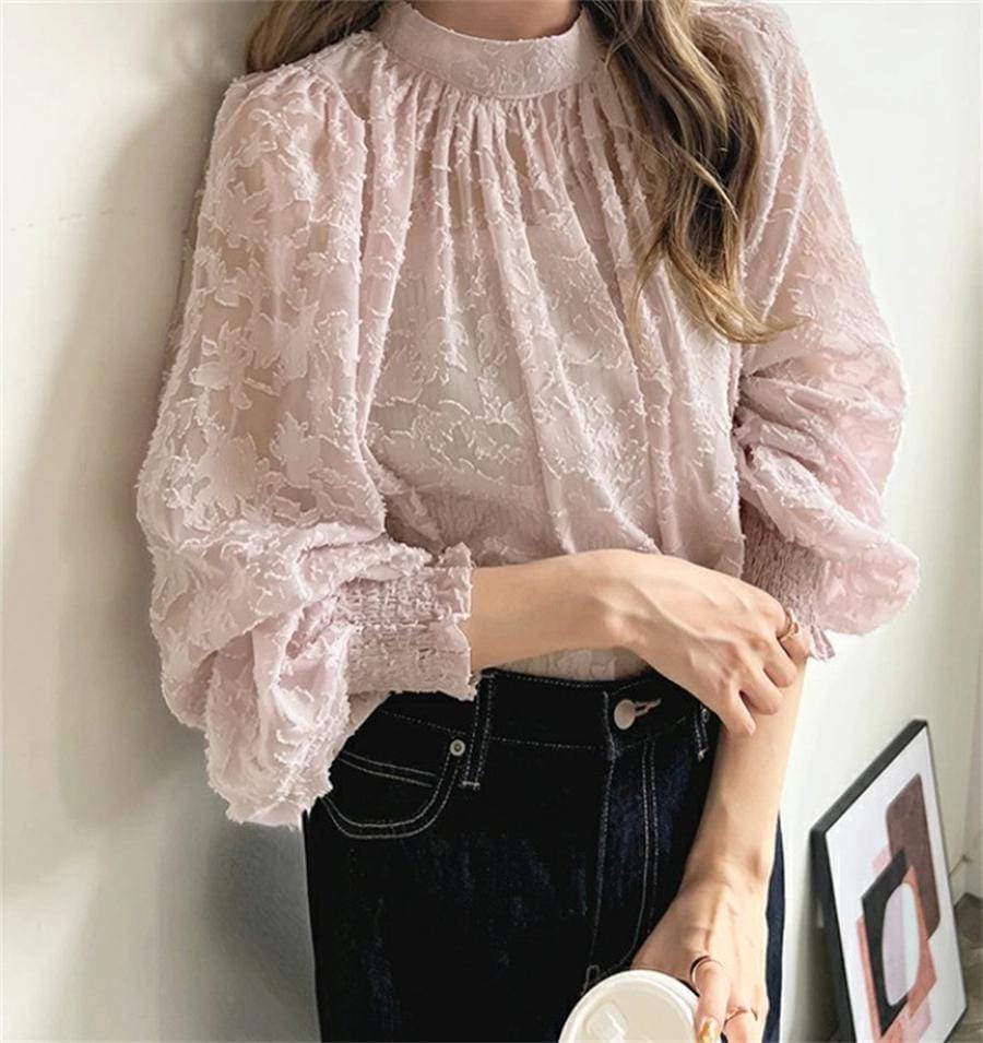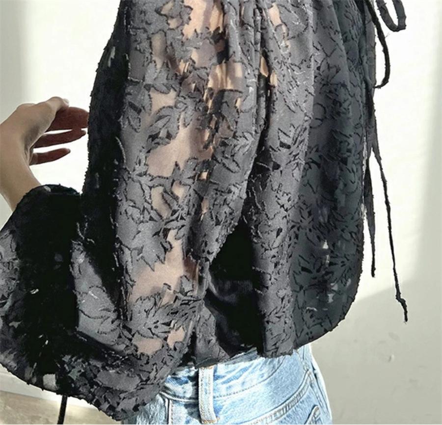 ブラウス レディース ブラウス オフィスブラウス 長袖 白レース透かし彫り オシャレブラウストップス 韓国風 大人 通勤OL ゆったりシャツインナー