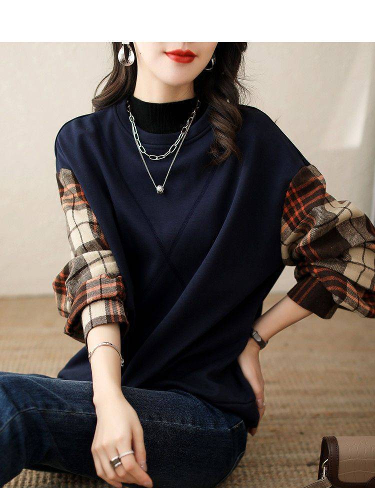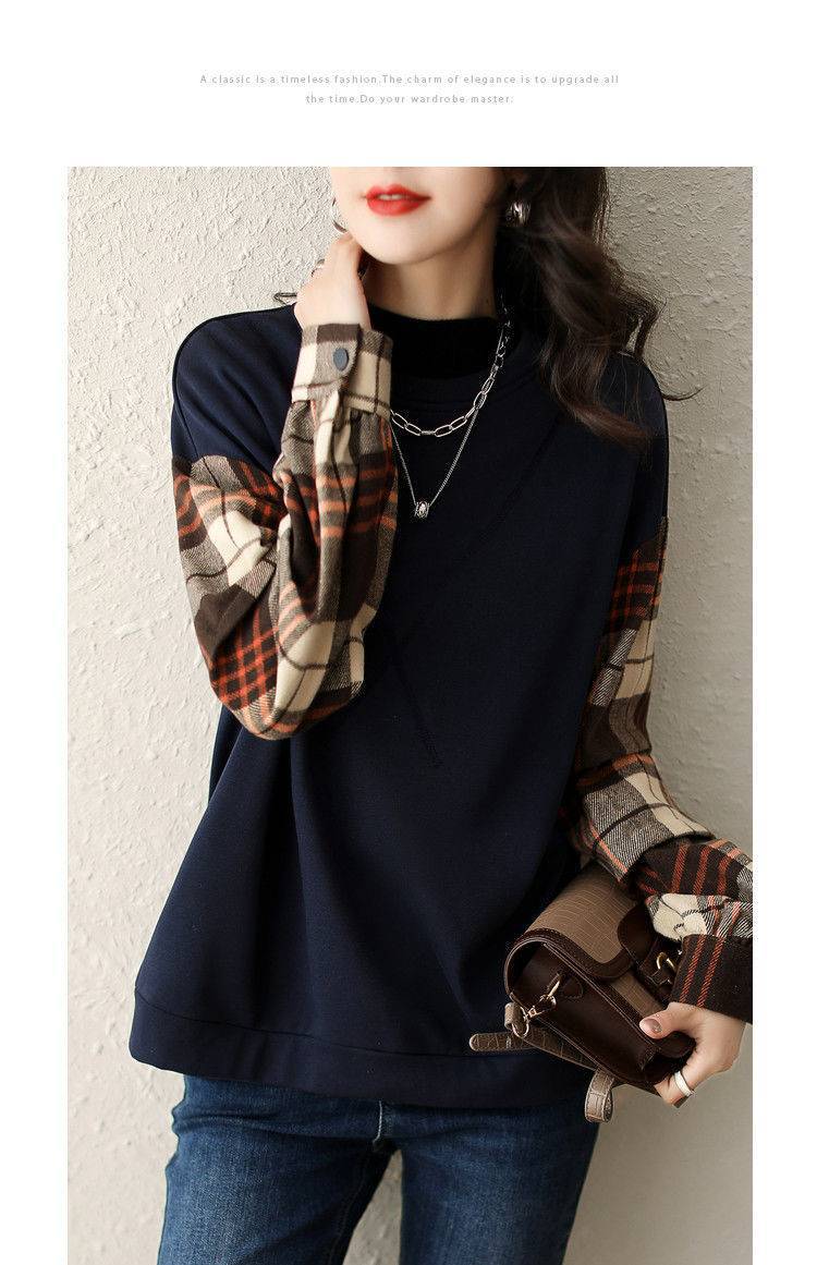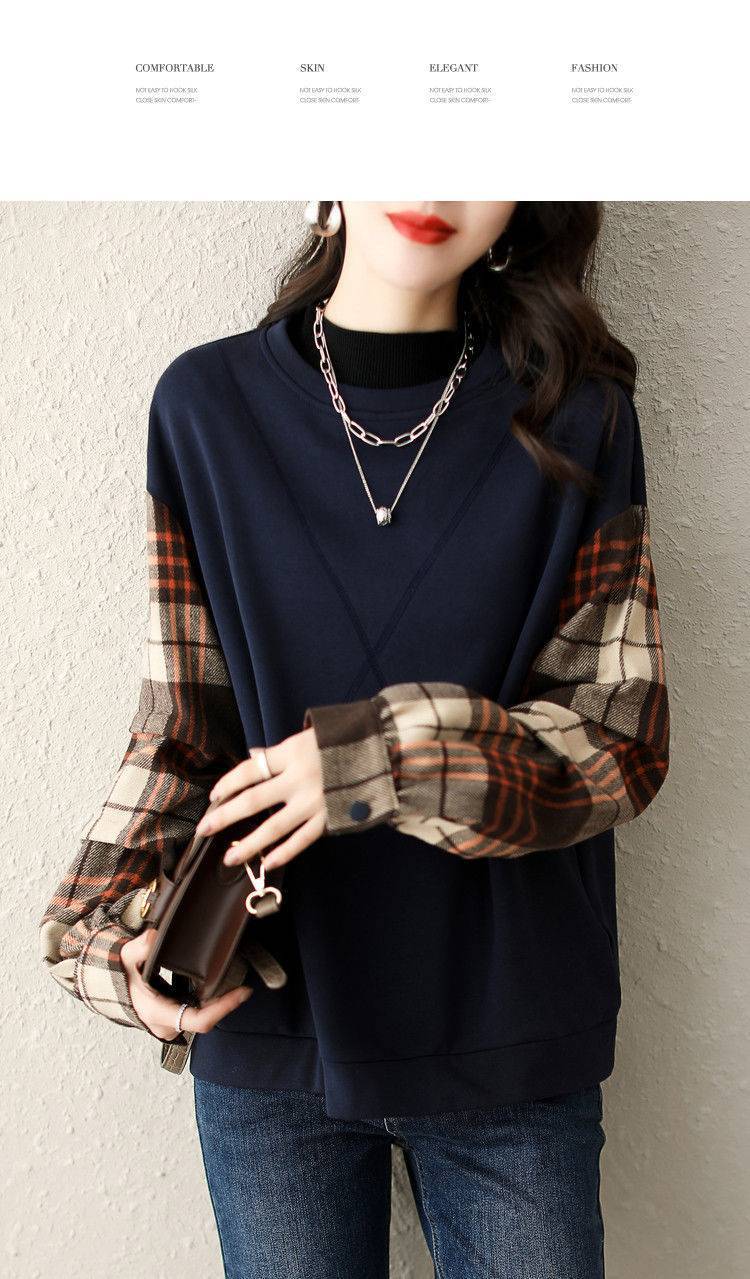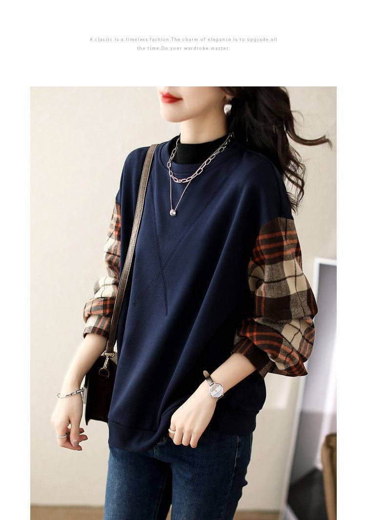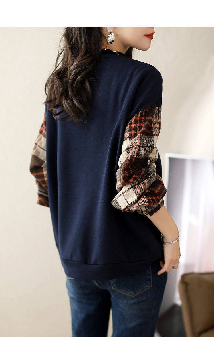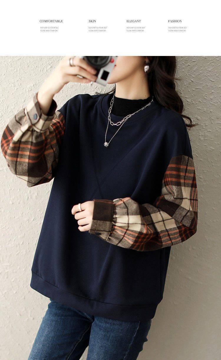 2025春の新作 丸首 パーカートップス 体型カバー レディースレトロチェック柄 快適アウタートップスファッション シンプルカジュアル 通勤通学