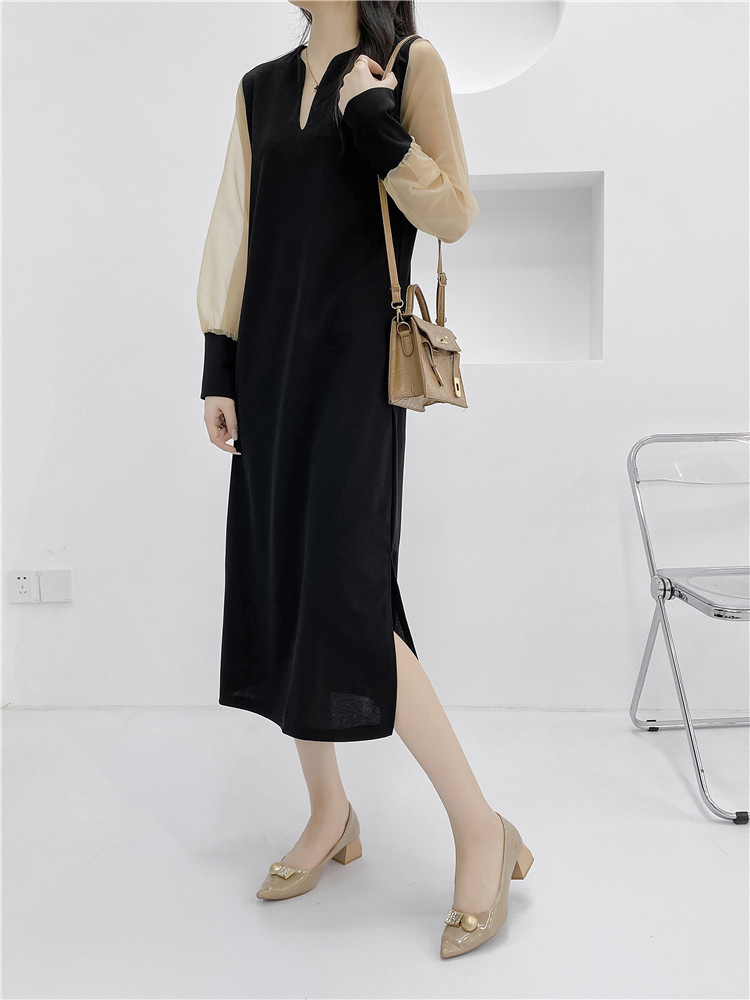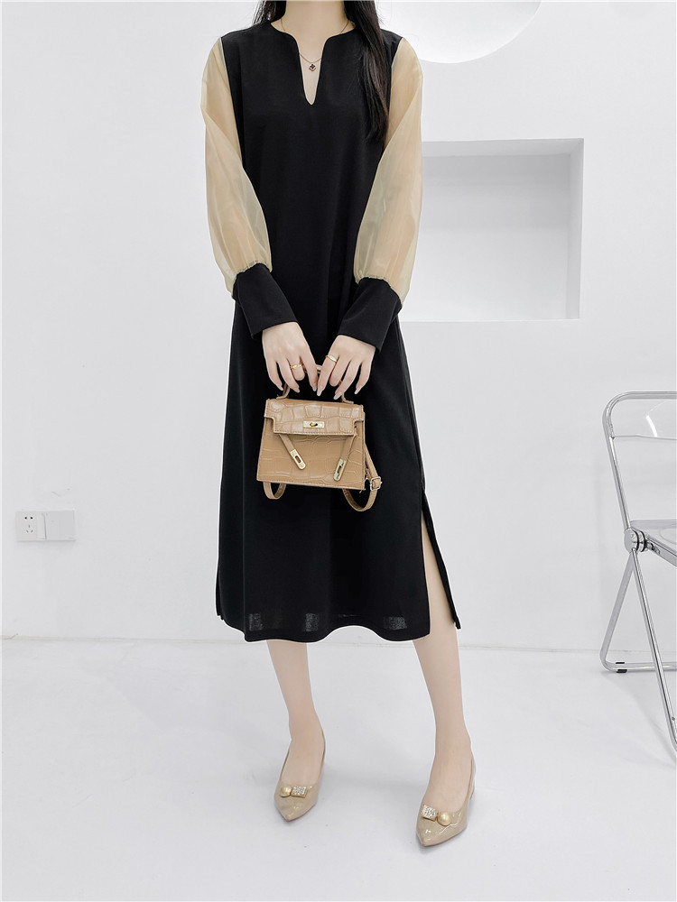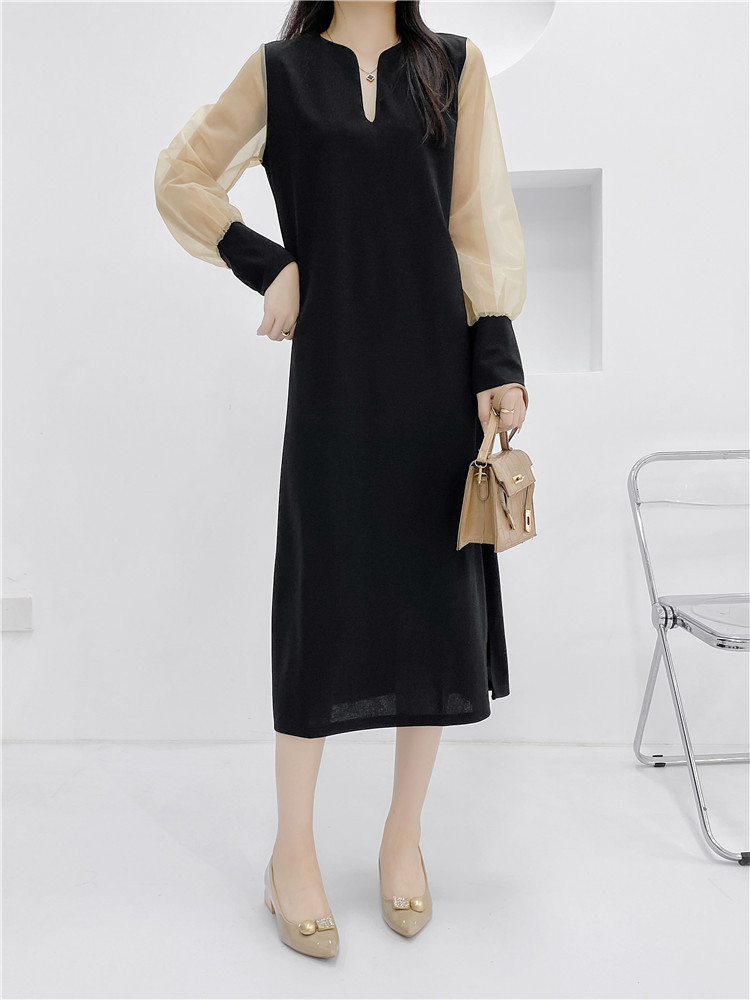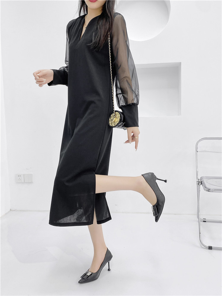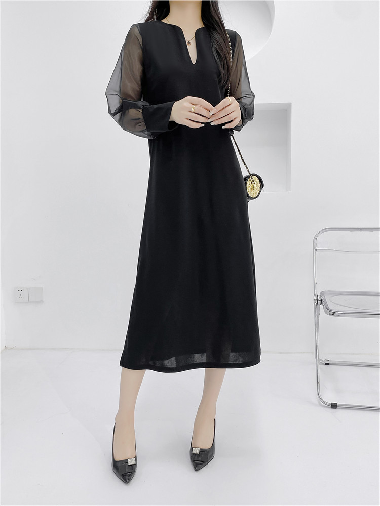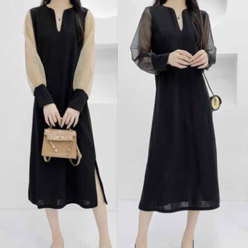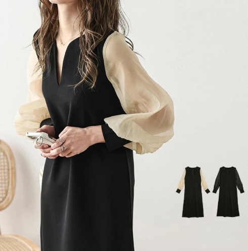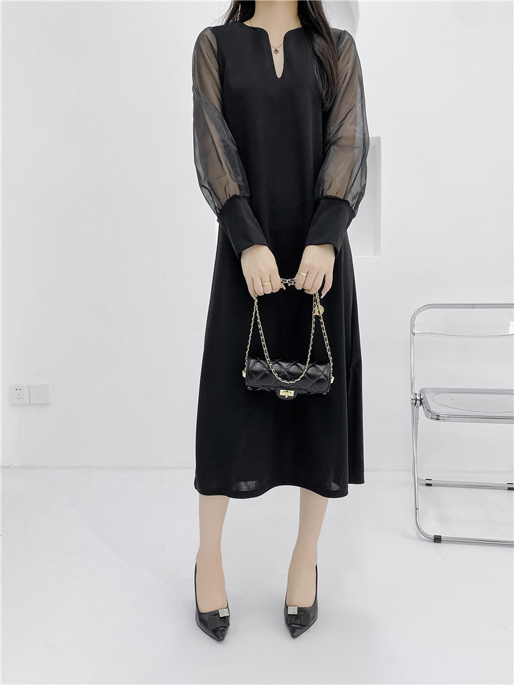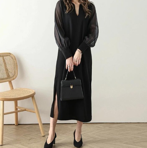 送.料.無.料 大人気 おしゃれ シフォンスリーブ オシャレワンピ 無地 長袖ロング マキシ丈ワンピ パーティードレス ワンピース ロングワンピ 韓国