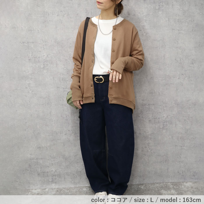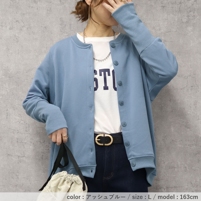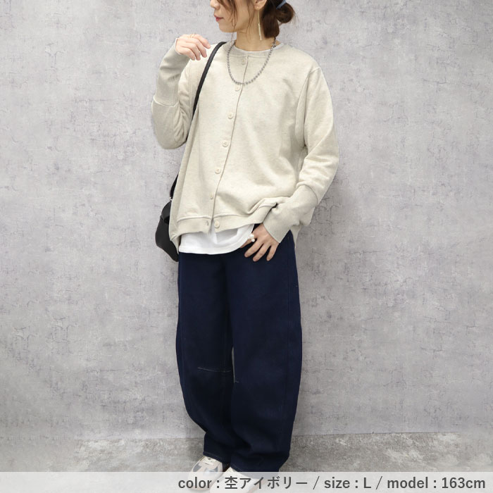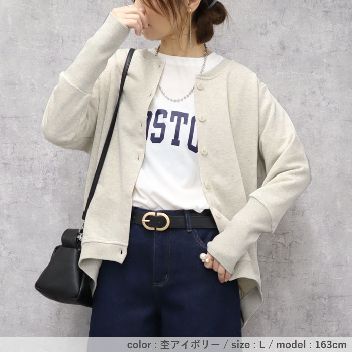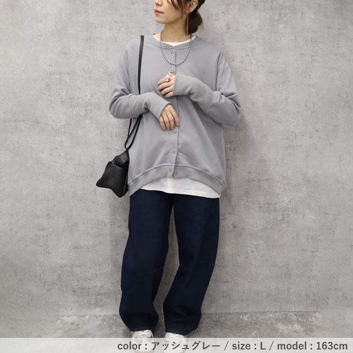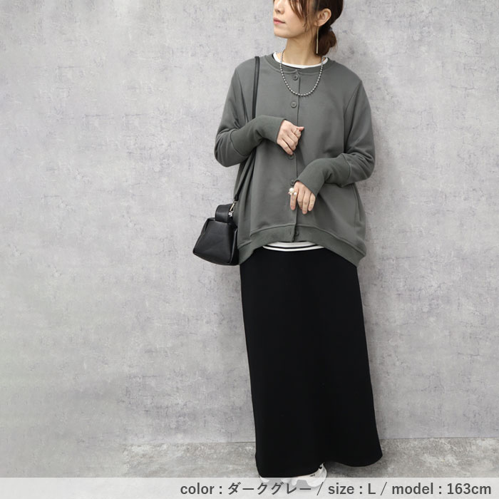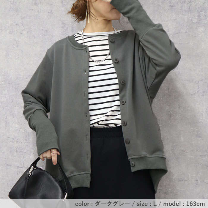 カーディガン レディース トップス おしゃれ リブ長 スウェットカーデ 長袖 羽織 2WAY ラウンドヘム[郵3]^v186^ カーディガン