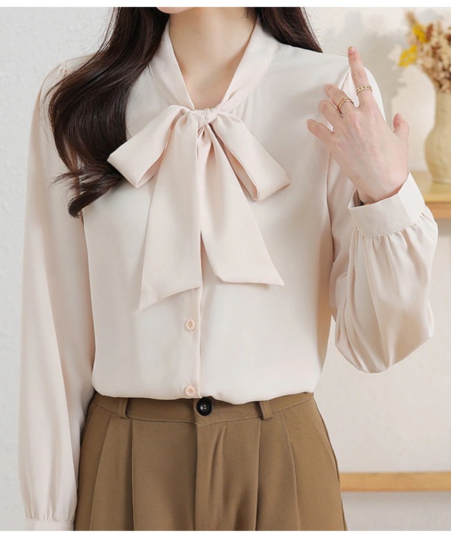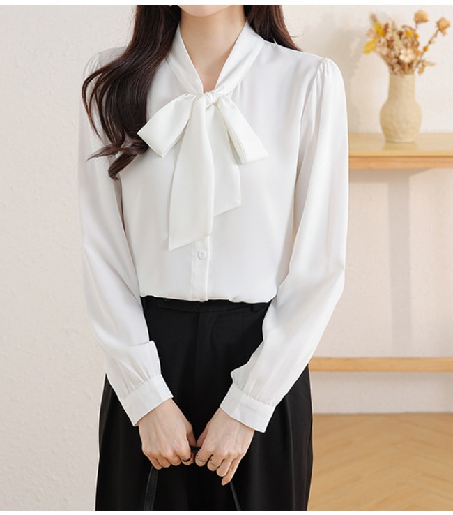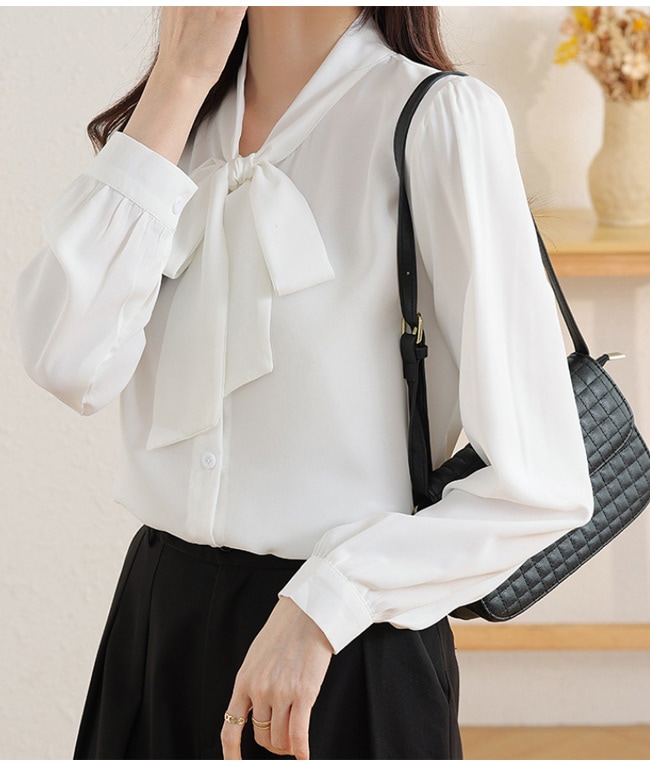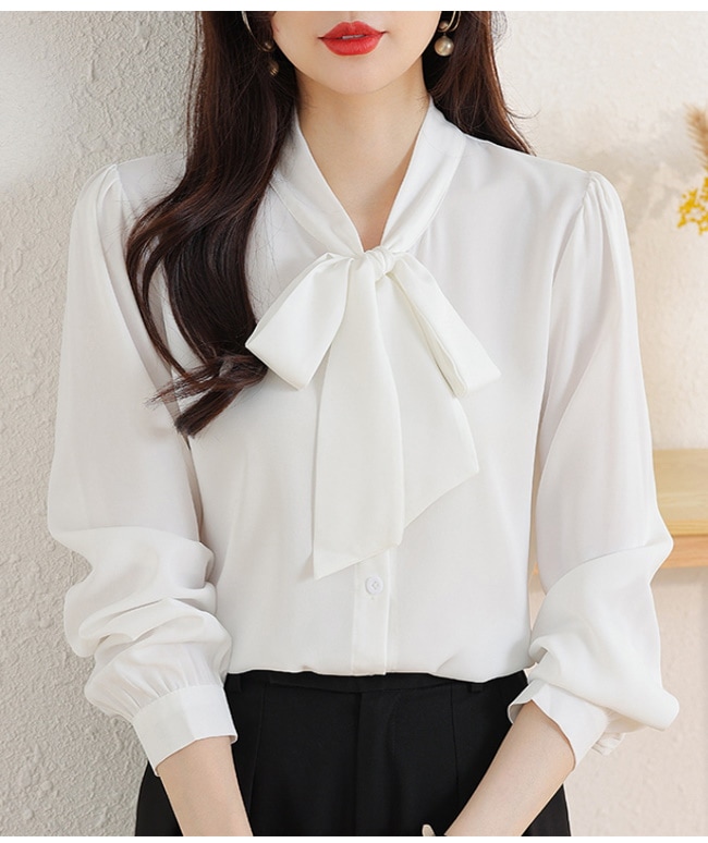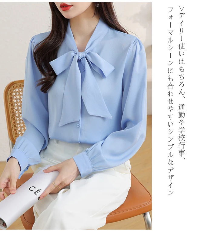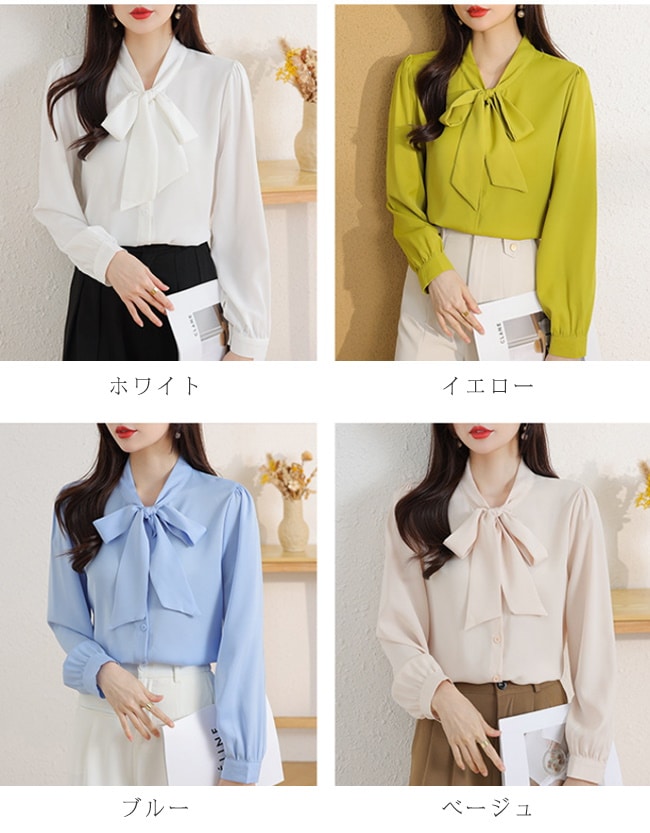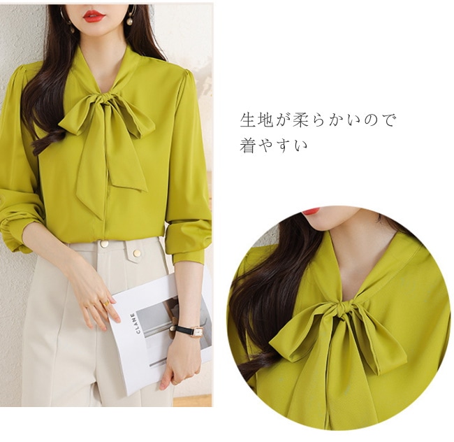 レディース ブラウス トップス 長袖シャツ スカーフタイ プルオーバー カジュアル フォーマル オフィス きれいめ 女性 普段着 通勤 OL リボン