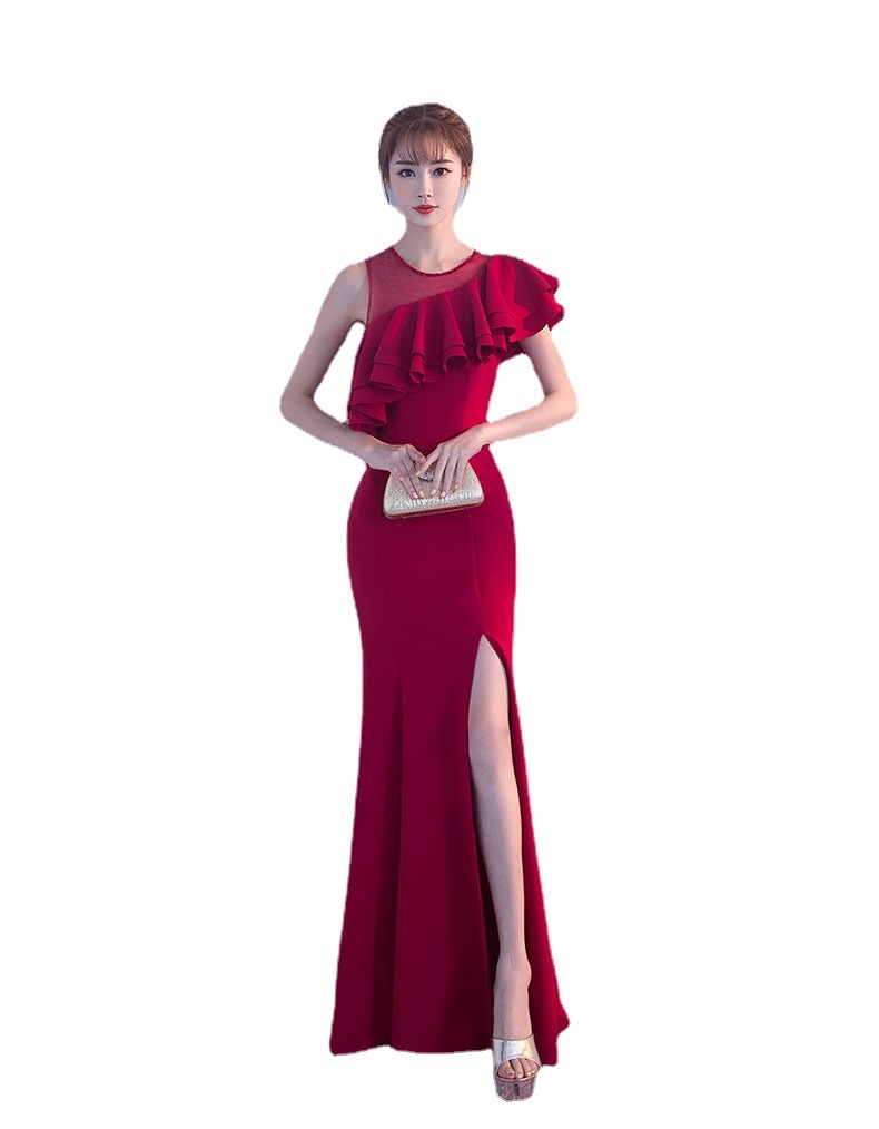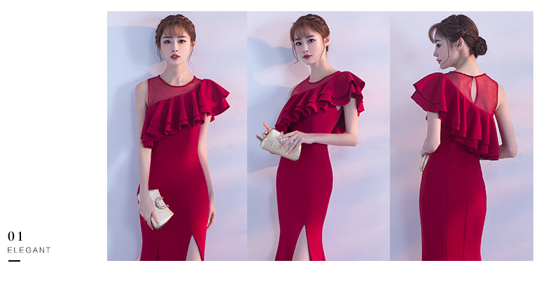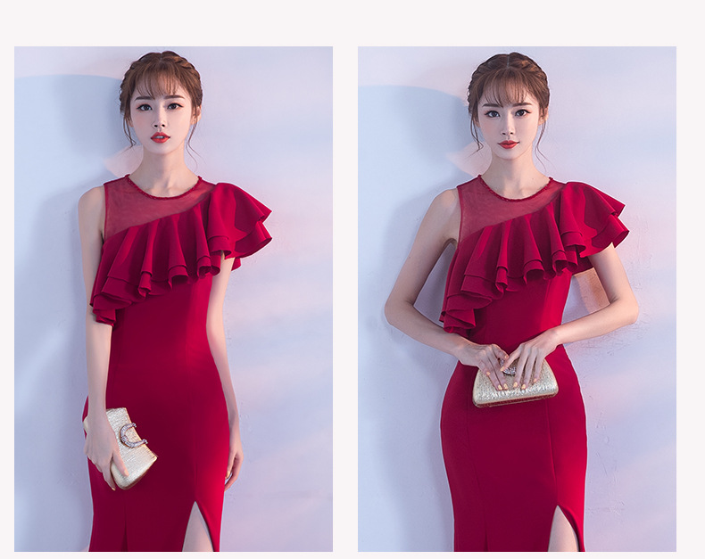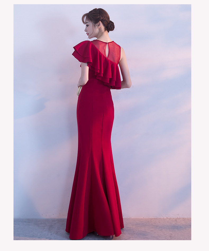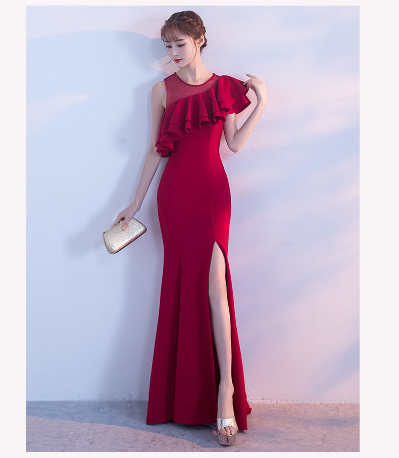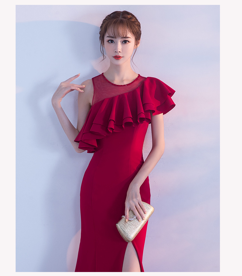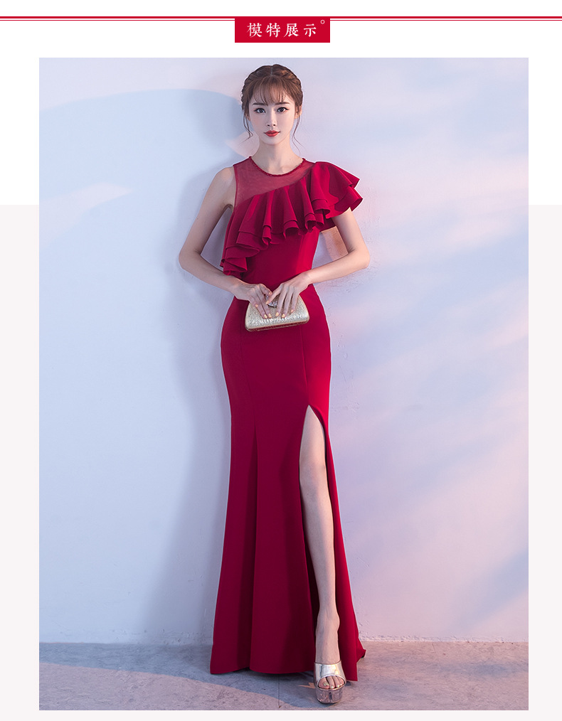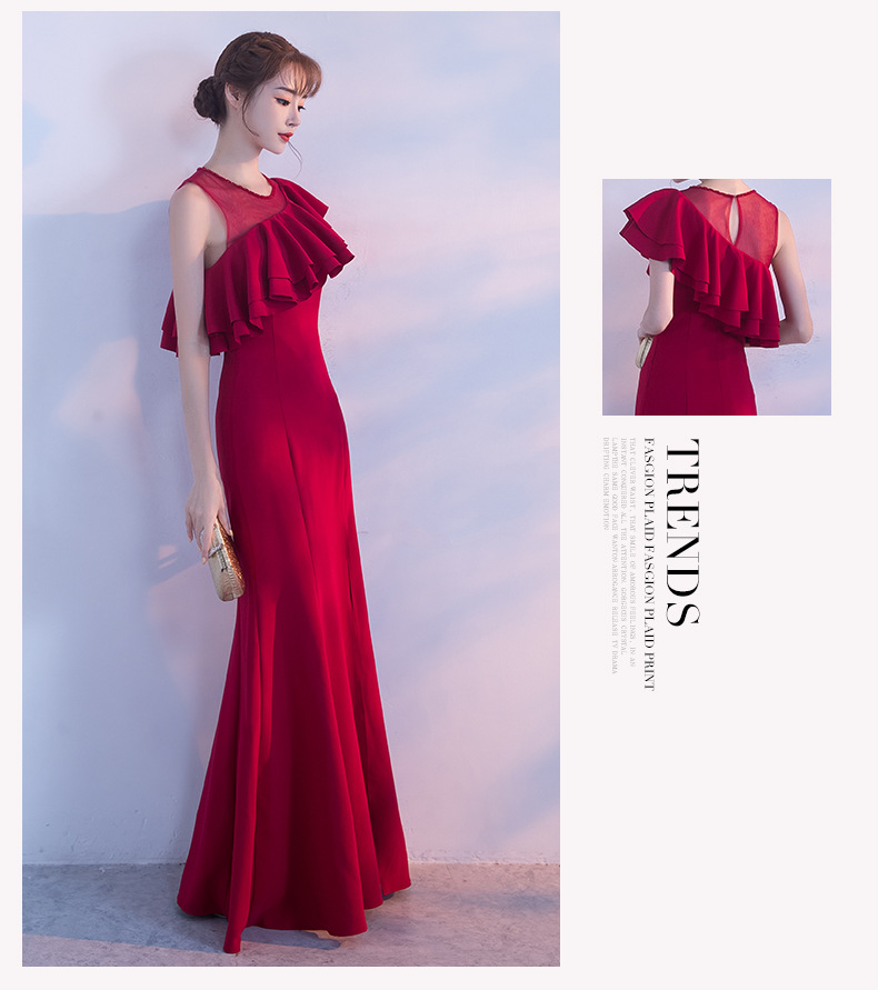 宴会 イブニングドレス 新作 気質 女王 気質 フィッシュテール ロングセクション スリム ハイエンド 雰囲気 イブニングドレス ドレス