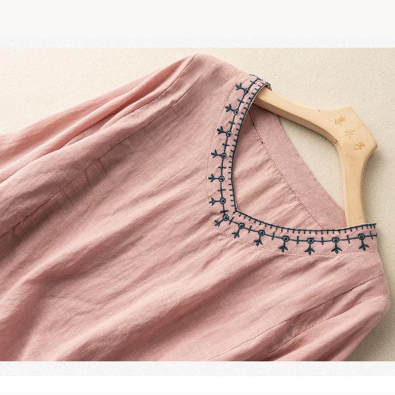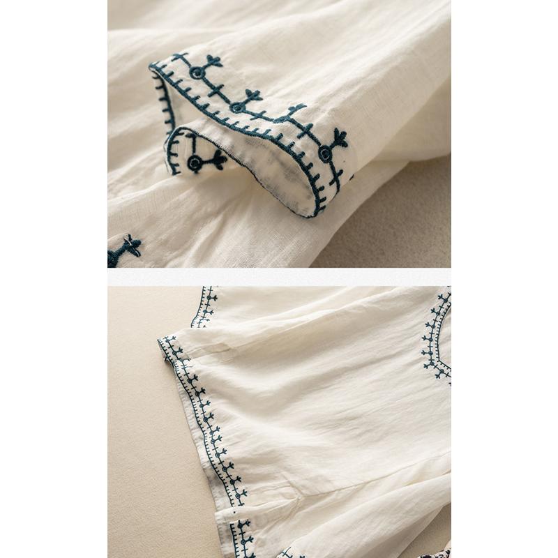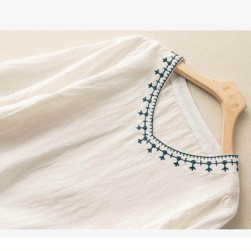 レディース ファッション 棉混紡 コットン 七分袖 無地 刺繍 棉麻 春秋 羽織り レトロ大人 体型カバー ビッグ フェミニン Tシャツ カットソー