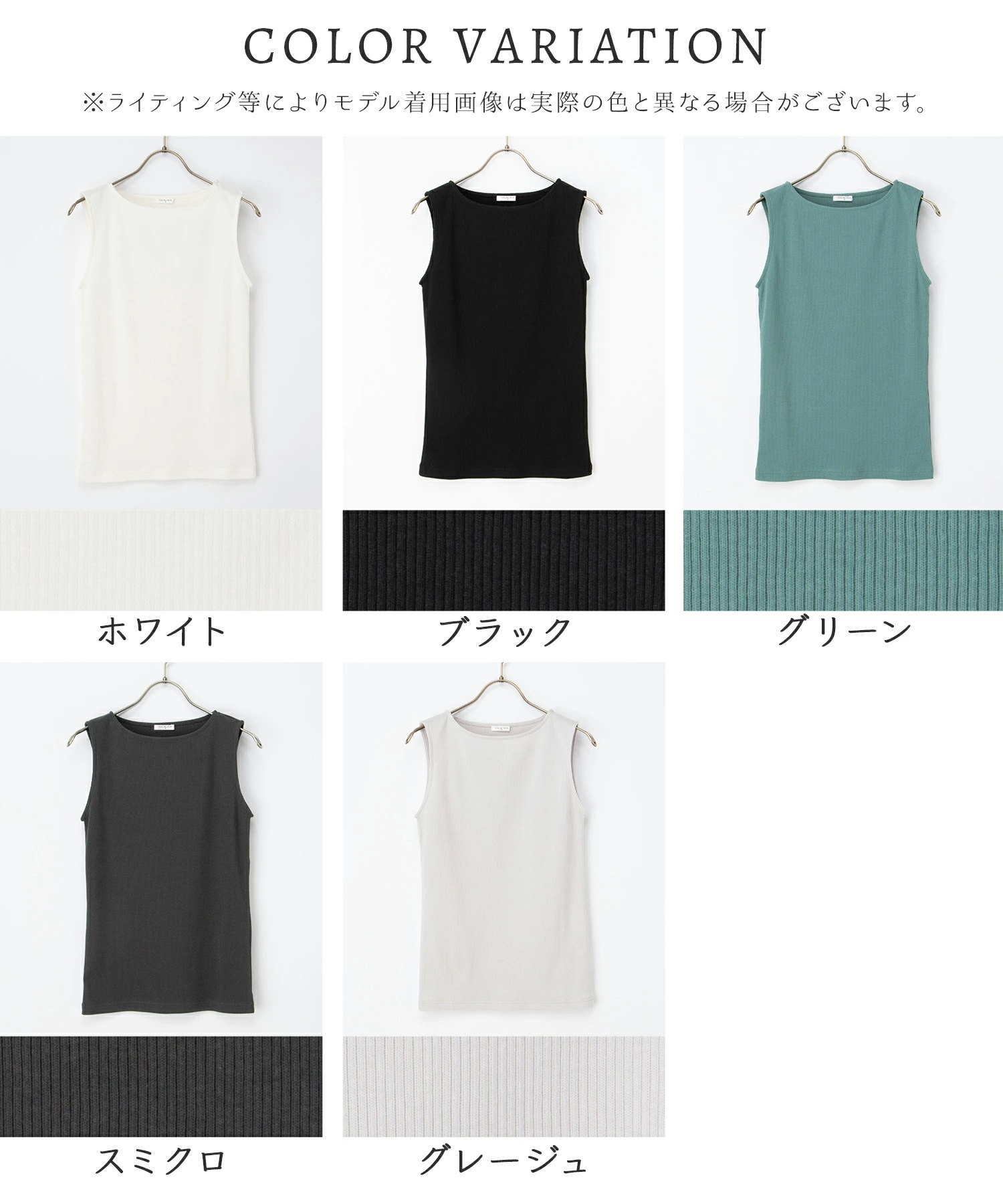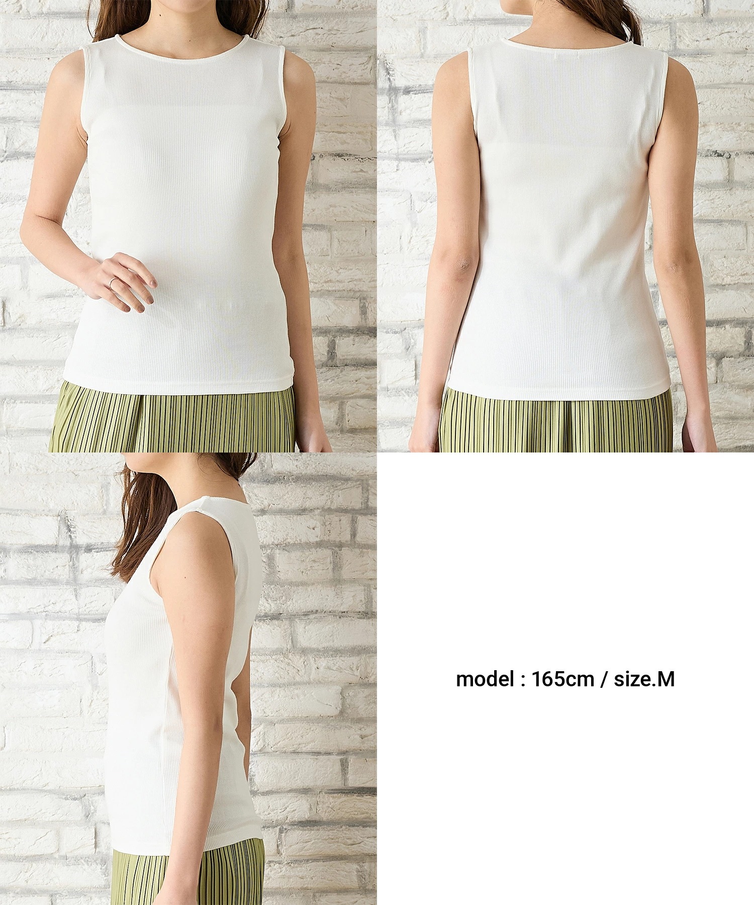 Honeys ボートネックタンク トップス タンクトップ UVカット ボートネック 無地 綿混 テレコ キャミソール