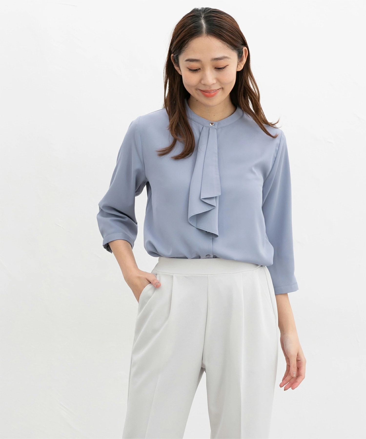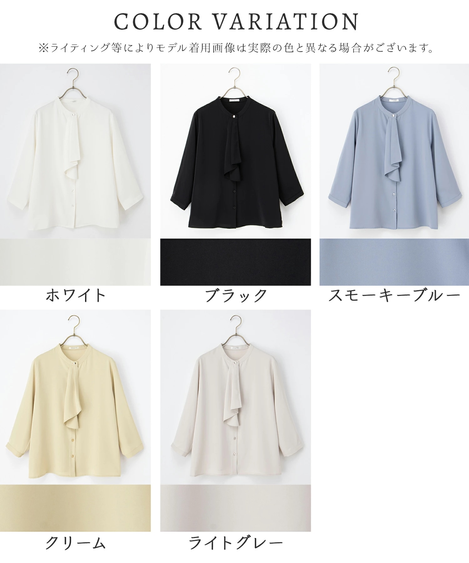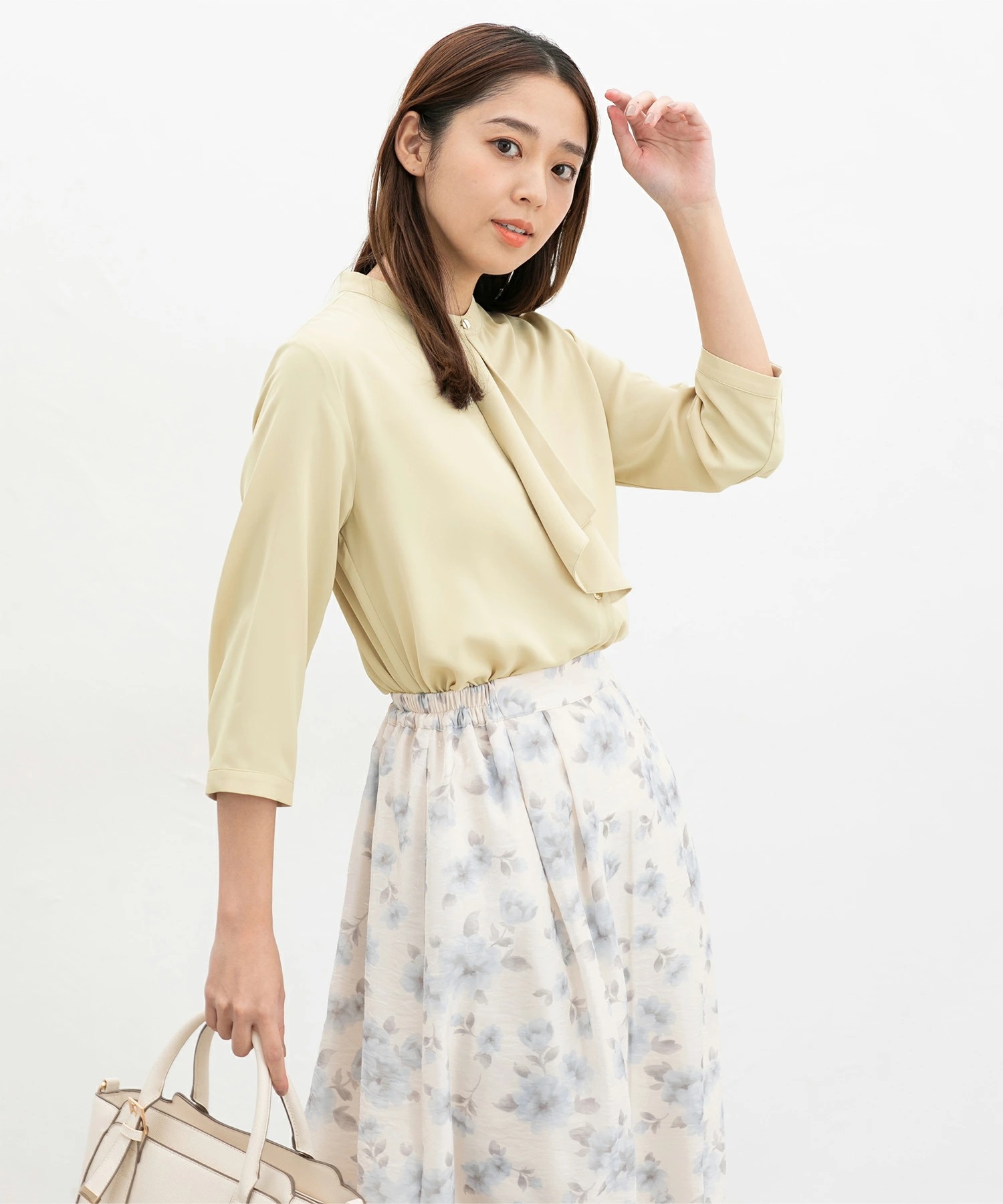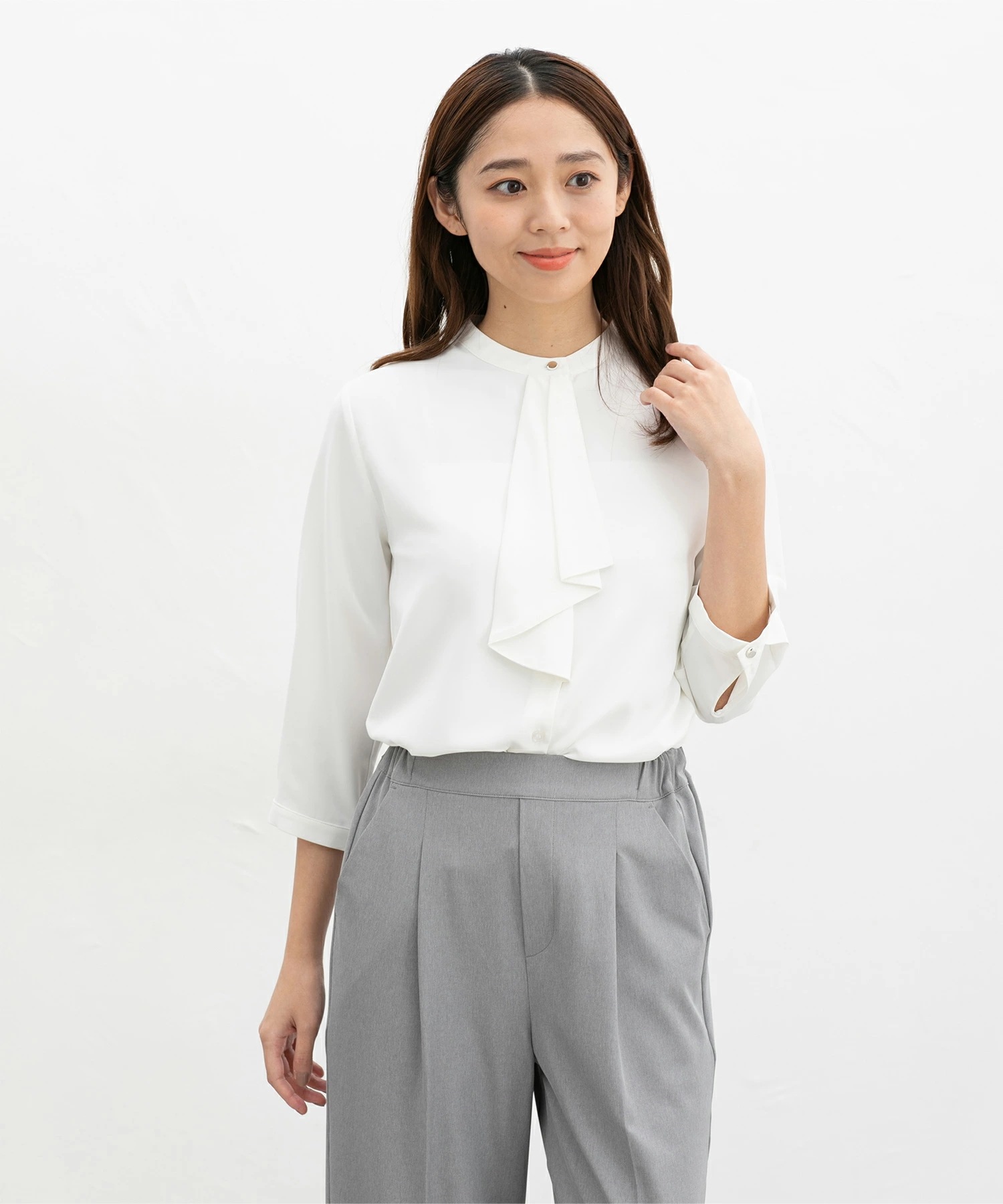 Honeys 7分袖ボウタイブラウス トップス ブラウス ボウタイブラウス 大きいサイズ オフィス きれいめ シャツ ブラウス