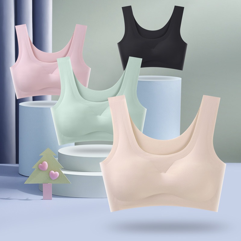 新作 シームレスブラ ナイトブラ ノンワイヤ― おしゃれ 締め付けない 楽ちん 大きいサイズ 響かない ブラジャー ヨガ ピラティス ジム カップ付き 脇高 脇肉 育乳