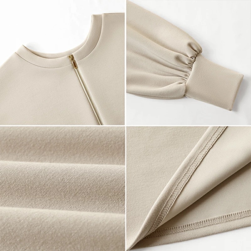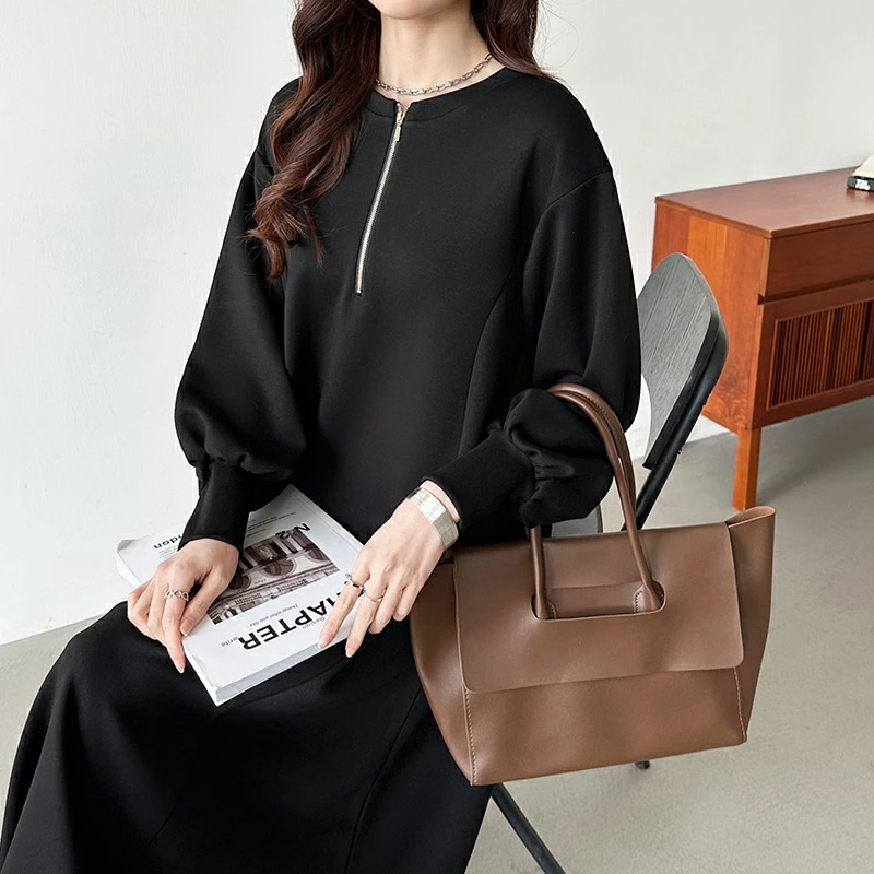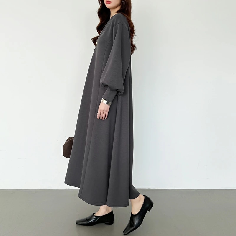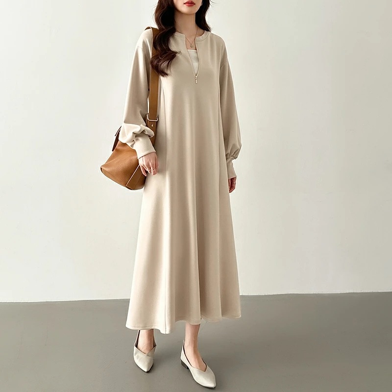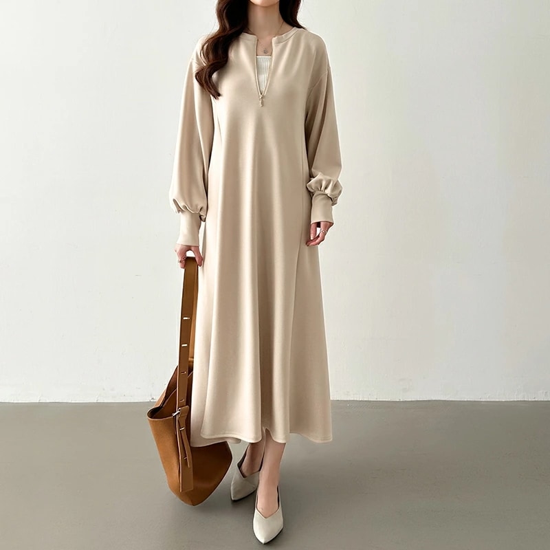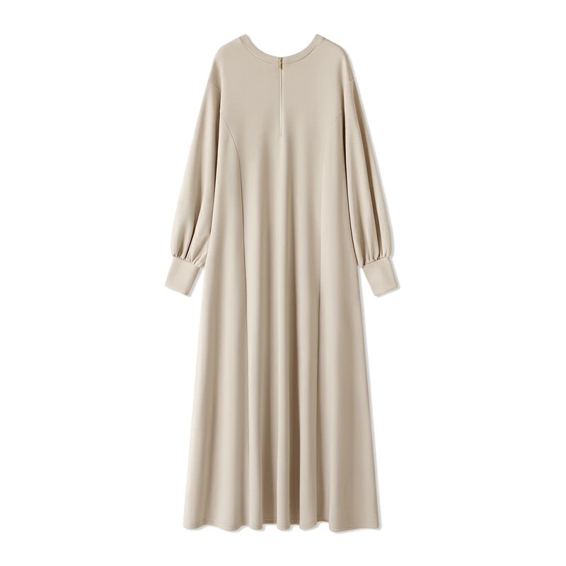 ハーフジップワンピース 前後2way ロングワンピース フレアワンピース ハーフジップ ワンピース 長袖 レディース ロング カジュアル ボリューム袖 大きいサイズ