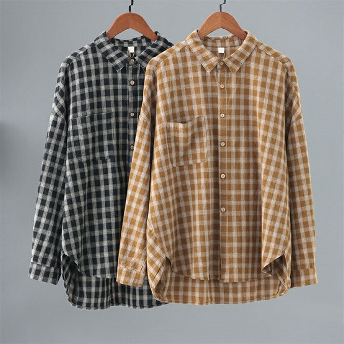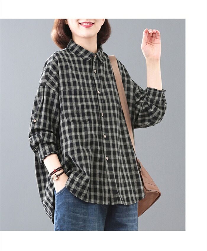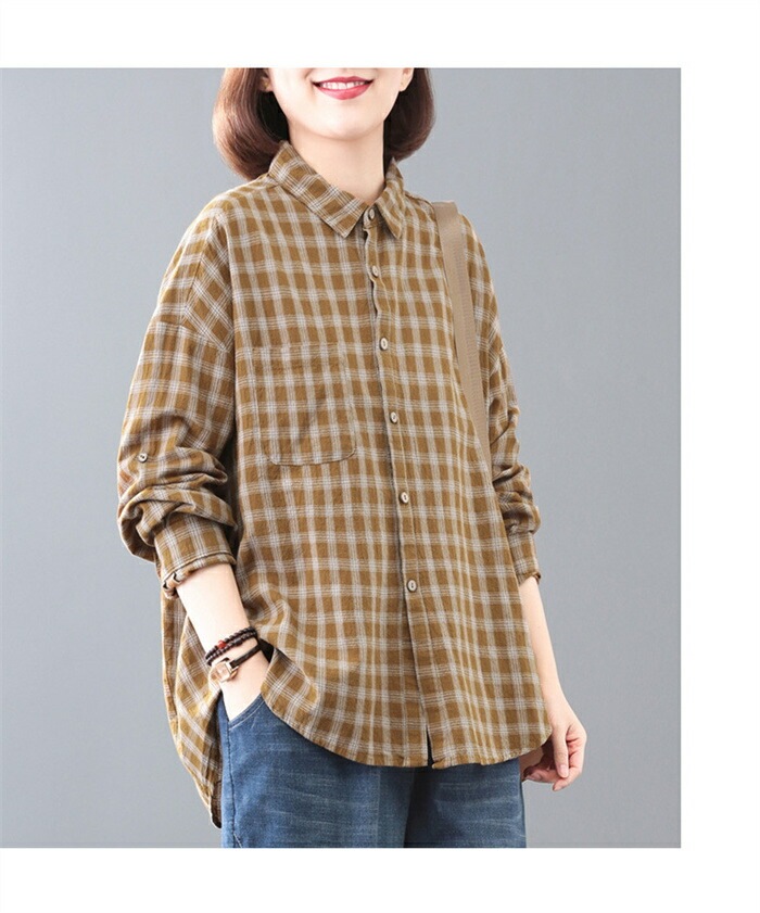 シャツ レディース 長袖 ギンガムチェック シャツ 大きいサイズ トップス 春秋 ゆったり カジュアル 柔らか 仕事 通勤 ベーシック 着瘦せ ナチュラル 着まわし