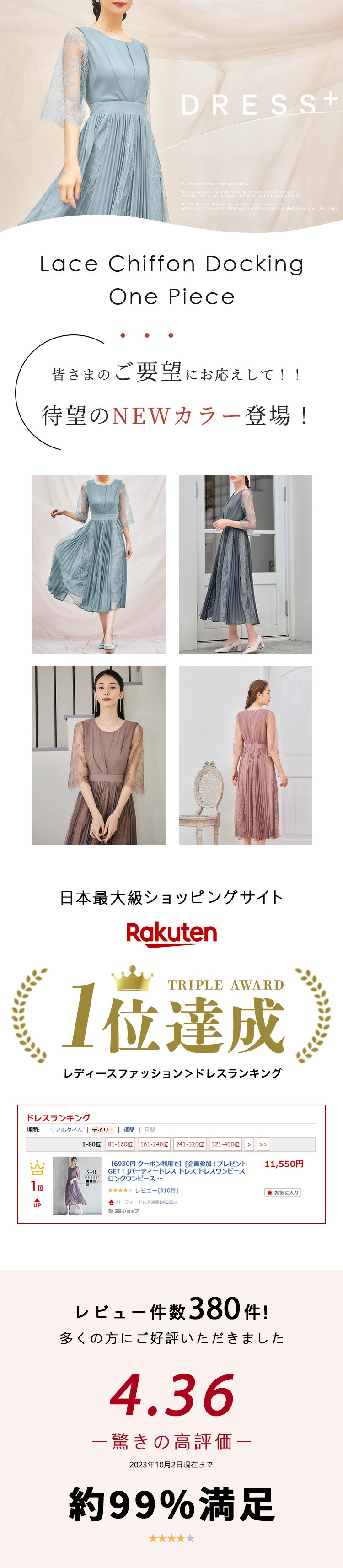 トレンドライクなレースシフォンドッキングワンピースドレス パーティードレス ドレス ドレスワンピース ワンピース レディース レース 冠婚葬祭 プリーツ 結婚式 二次会 パーティー