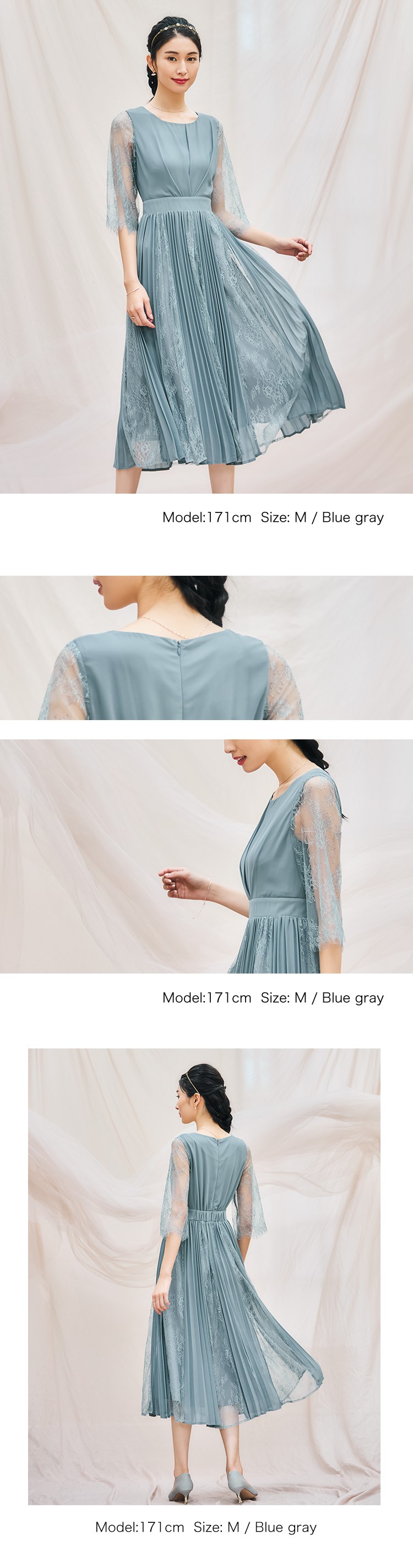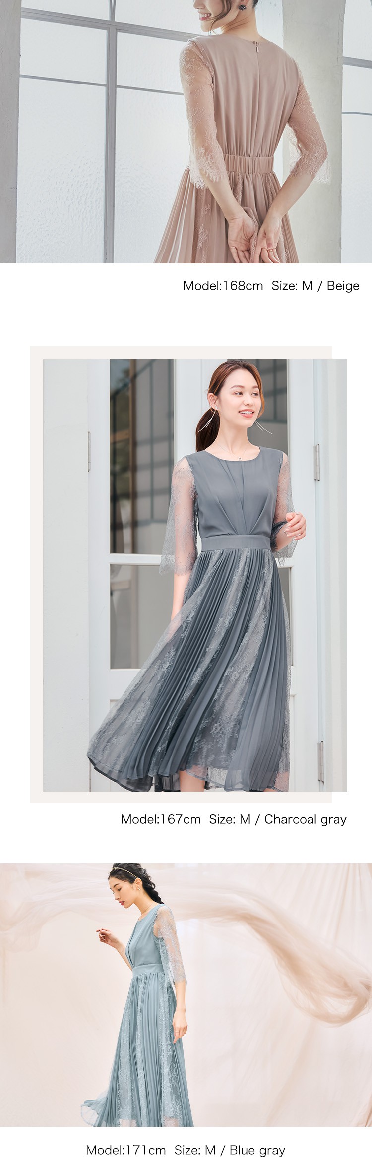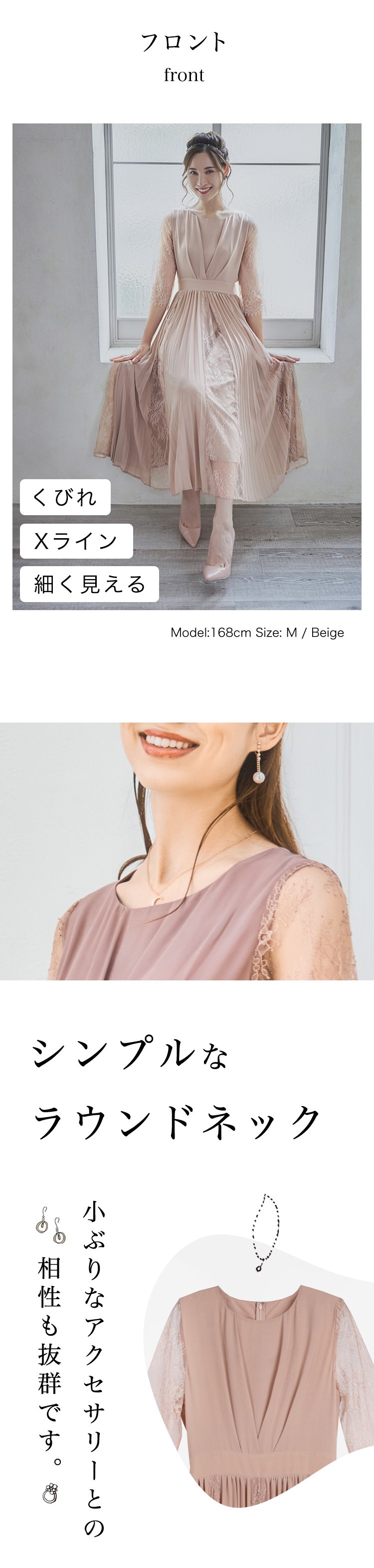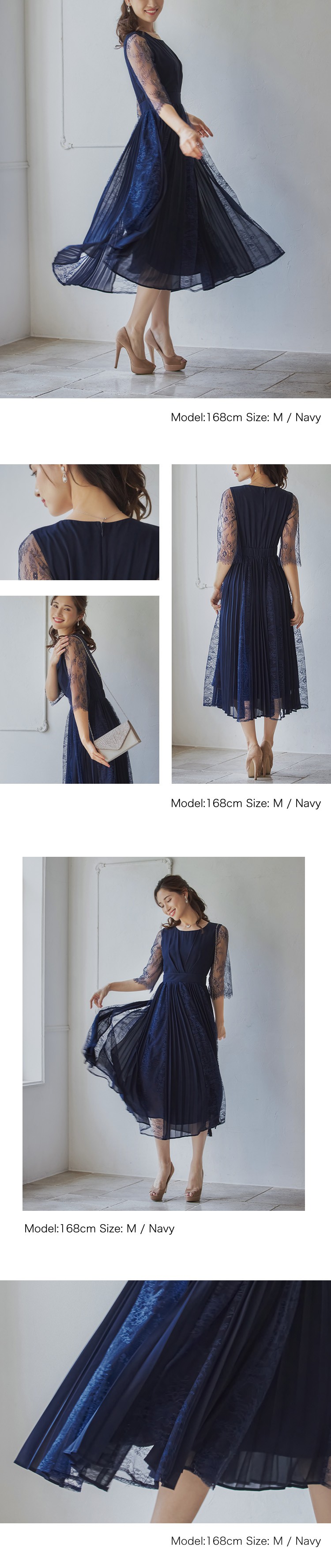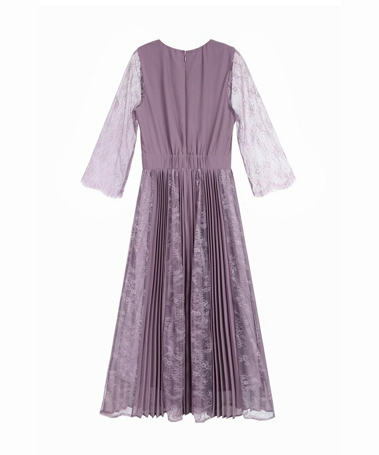 パーティードレスドレス ドレスワンピース ロングワンピース [企画] ワンピース レディース レース シースルー袖 裏地付き ロング丈 ミモレ丈 袖あり ドッキング プリーツ 結婚式 二次会 パー