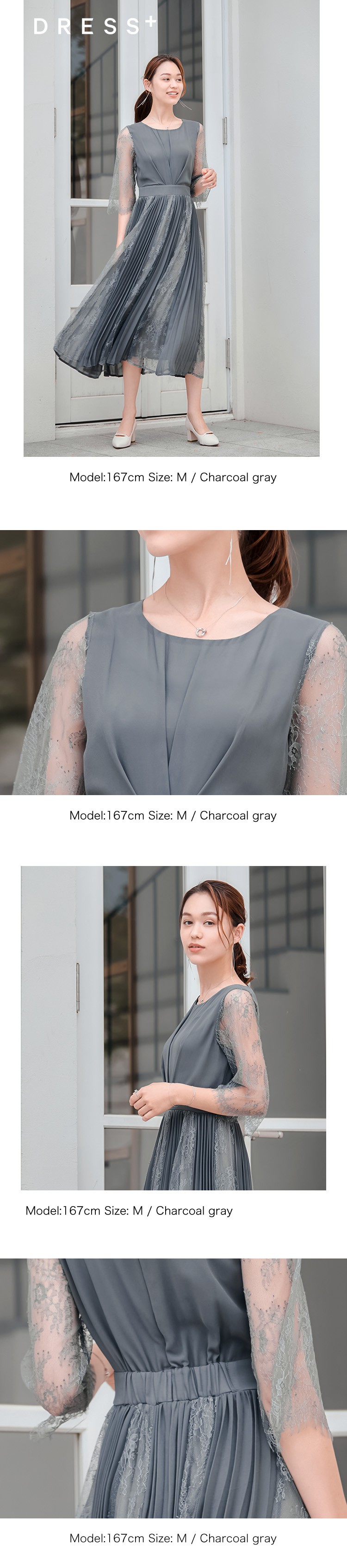 パーティードレスドレス ドレスワンピース ロングワンピース [企画] ワンピース レディース レース シースルー袖 裏地付き ロング丈 ミモレ丈 袖あり ドッキング プリーツ 結婚式 二次会 パーティー エレガント 透け感 きれいめ dsj0014