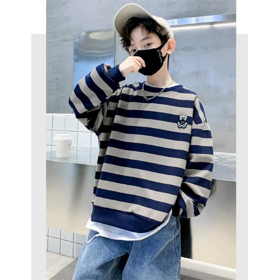 子供ジャージ ストライプ柄 トレーナー パーカー 男の子 長袖トップス スウェット 子ども服 キッズ ゆったり 通学 運動着 春秋 Tシャツ
