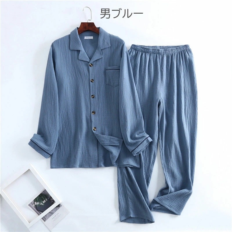 ガーゼパジャマ メンズ レディース 2重ガーゼパジャマ ペアパジャマ 部屋着 柔らか 長分袖 長ズボン ルームウェア 可愛い コットン 誕生日 プレゼント 男性 女性 婦人 ナイトウェア 上下セ
