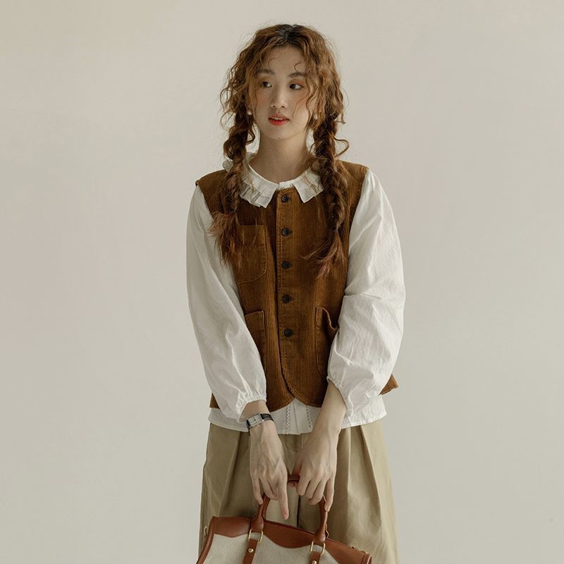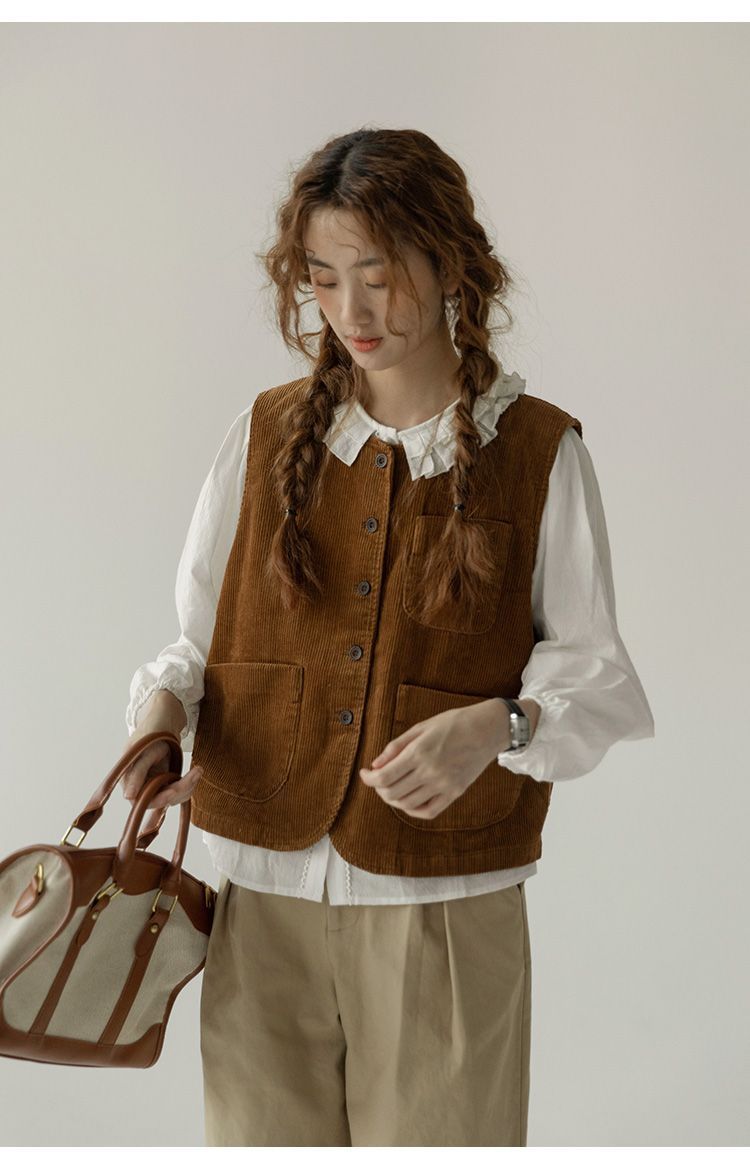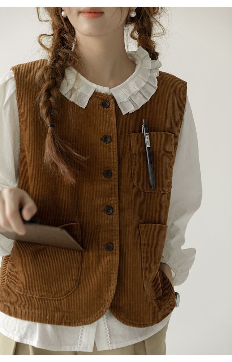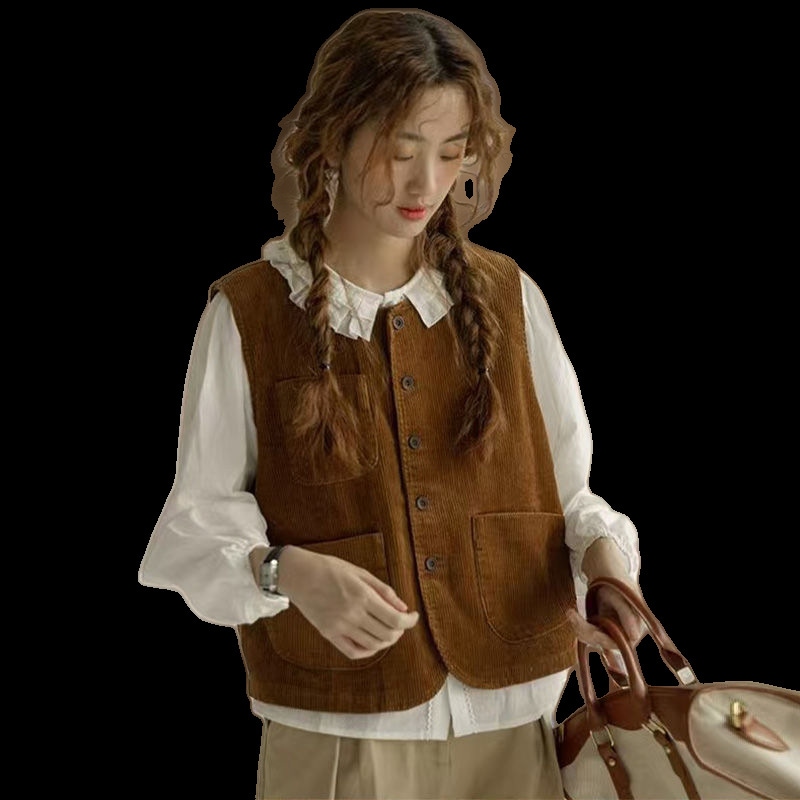 ベスト 通勤 コーデュロイ ホースジャケット レディース 2025春新作 レトロ ノースリーブ スチューデント アウター トップス 韓国ファッション
