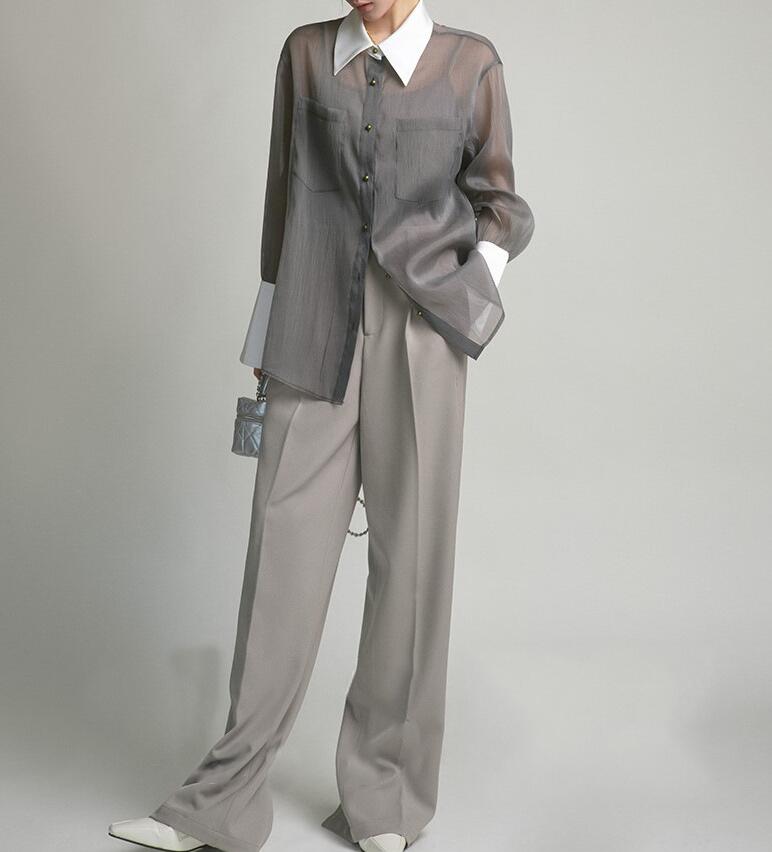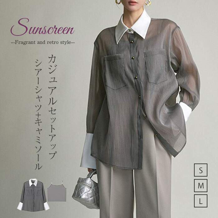 セットアップ ブラウス キャミソール シアーシャツ UVカット ブラウス レディース UVパーカー 春 夏 接触冷感 薄手 透け感 長袖 冷房対策 2点セット ライトアウター 撥水 速乾 通気 長袖