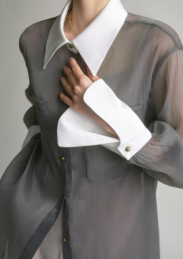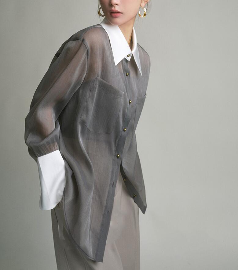 シフォンブラウス シアーブラウス ボリューム袖