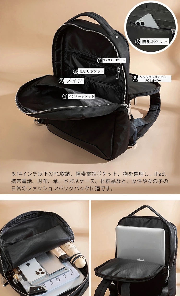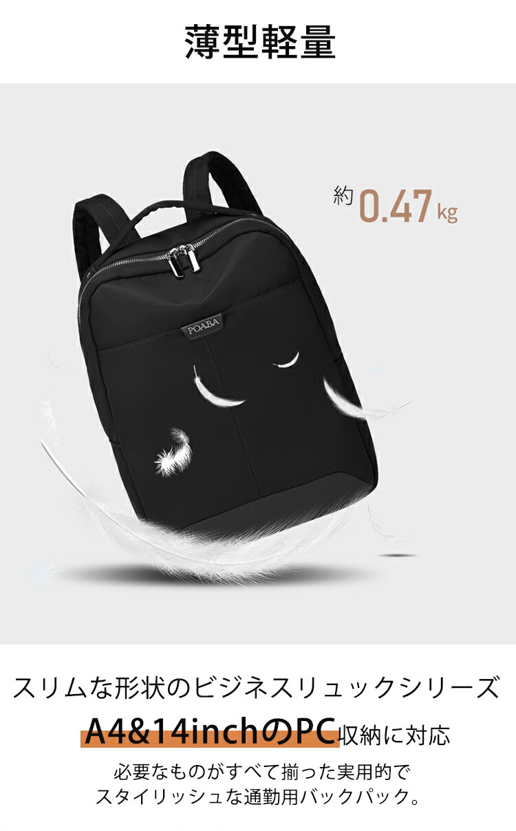 ビジネスリュック ビジネスバッグ リュック レディース 薄型 A4サイズ対応 レディース 収納 機能性 黒 シンプルノートpc PCポケット 旅行 リュック 通勤 おしゃれ 女性 大人 14