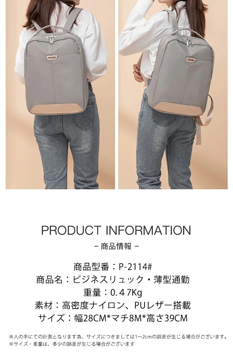 商品説明 ・働く女性に笑顔を!シンプルデザインのビジネスリュック厚み薄型だから通勤スタイルにもピッタリ。