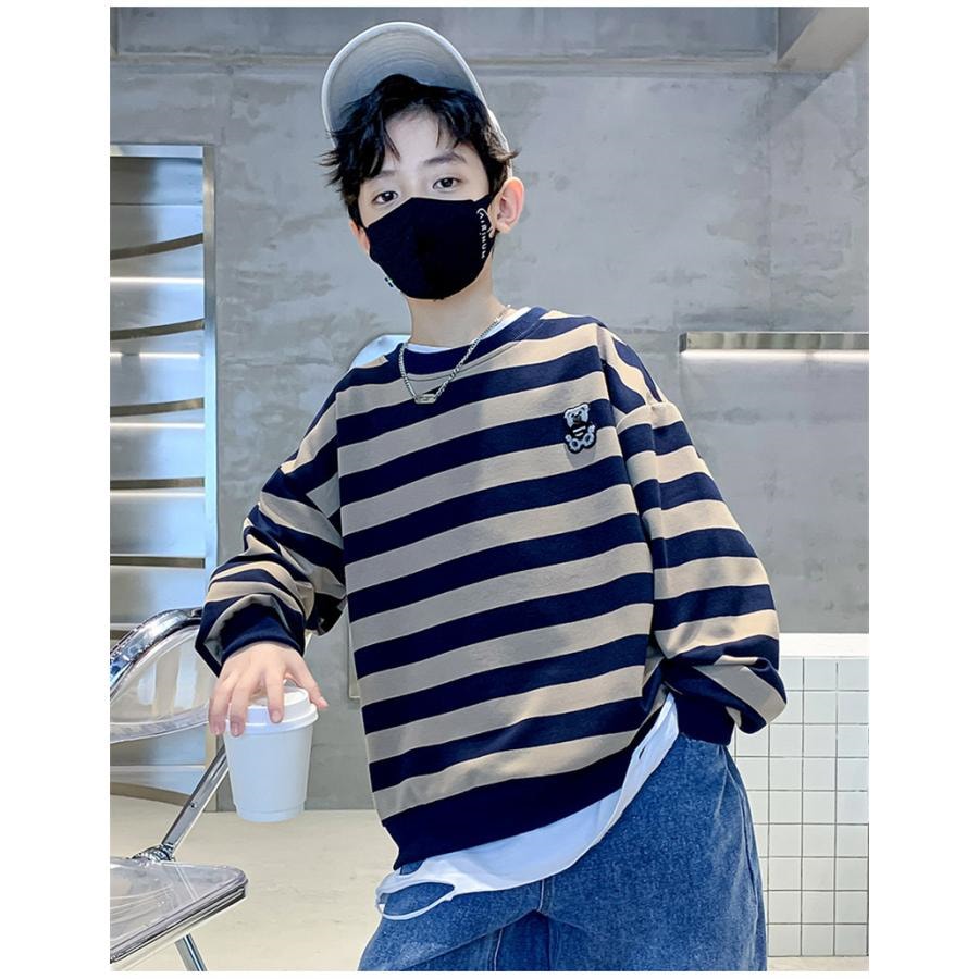 子供ジャージ ストライプ柄 トレーナー パーカー 男の子 長袖トップス スウェット 子ども服 キッズ ゆったり 通学 運動着 春秋 Tシャツ