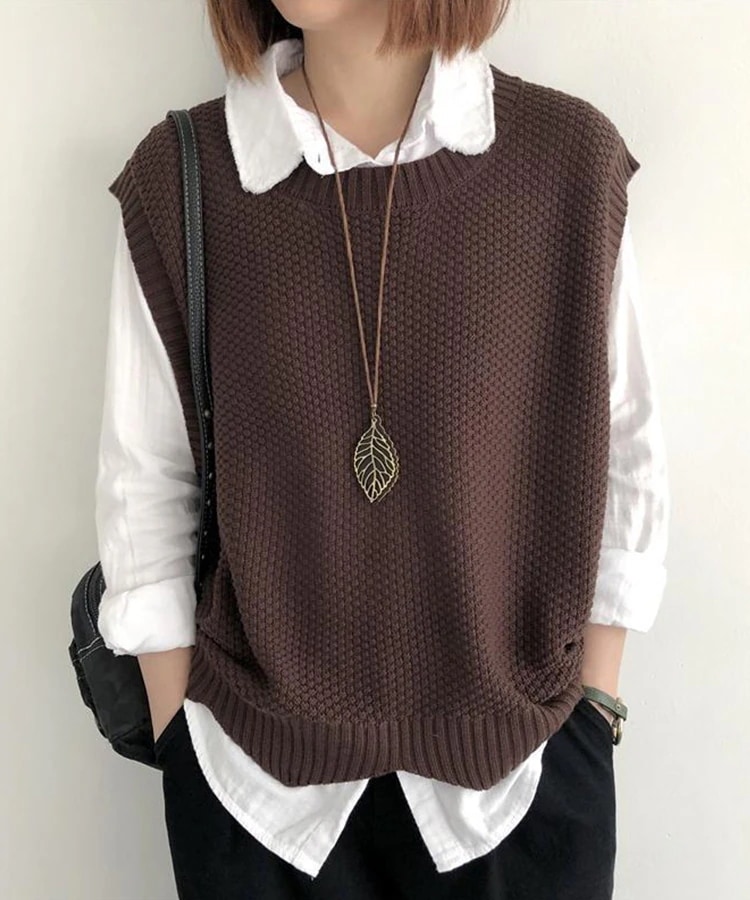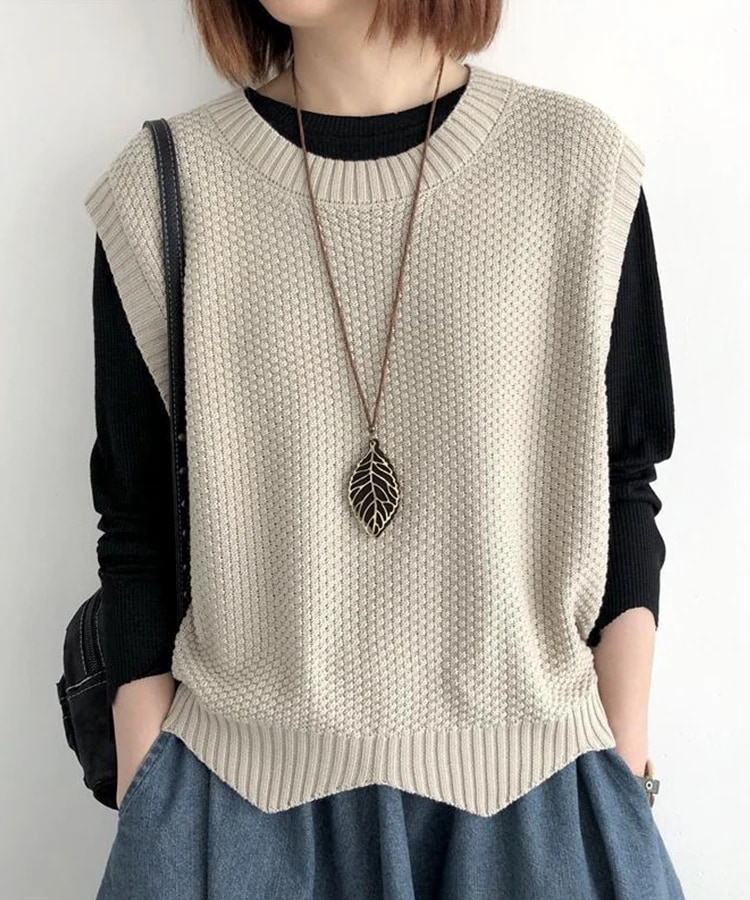 ニット ベスト レディース 秋 冬 ゆったり トップス 2TYPE 裾スカラップ 着回し 裾くるり ノースリーブ おしゃれ ペプラム カジュアル 重ね着 薄手 オーバーサイズ 春