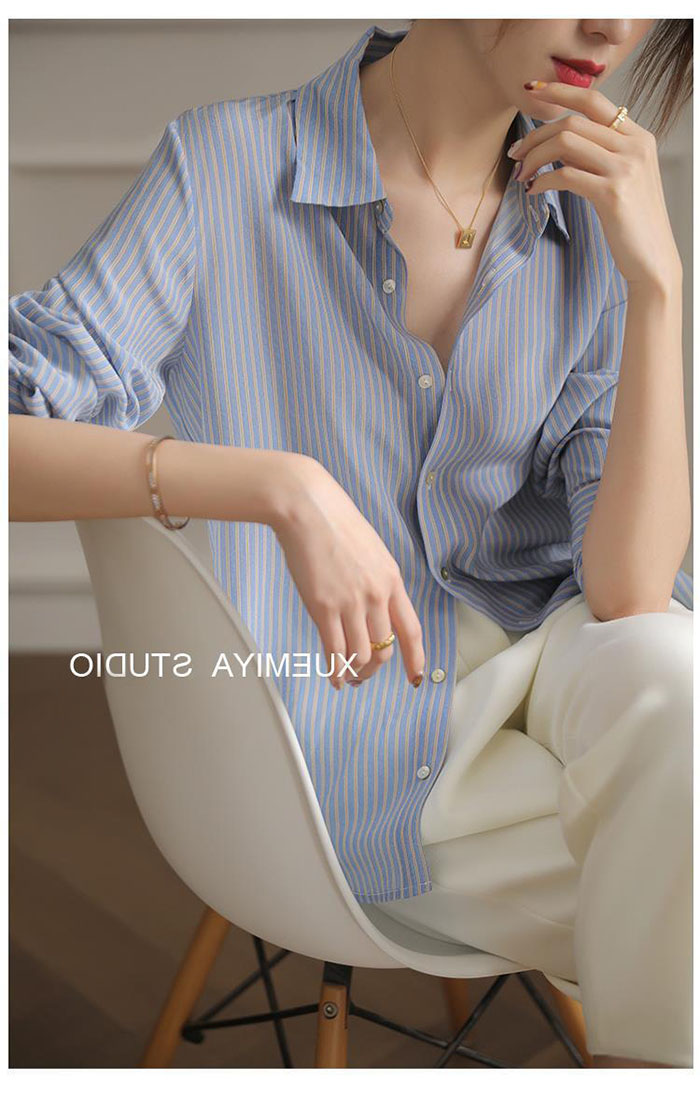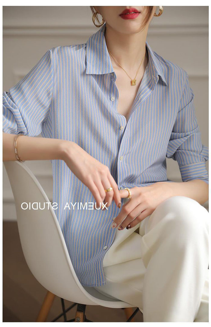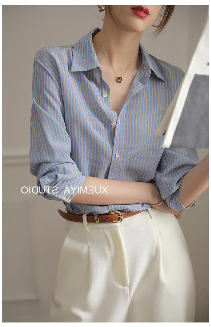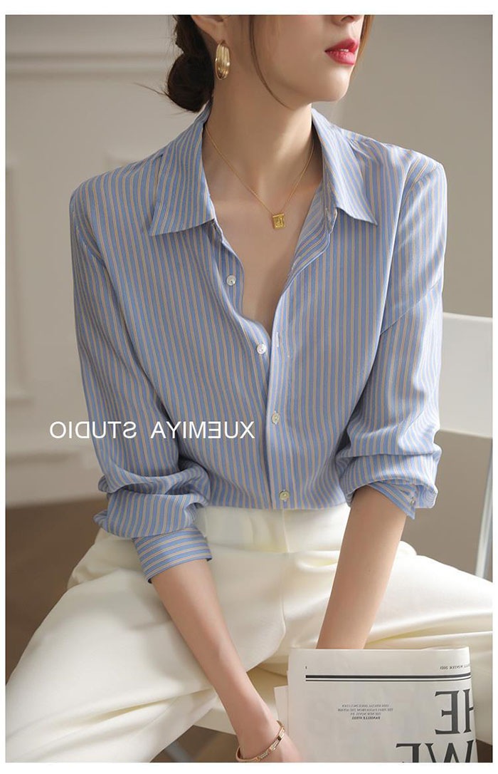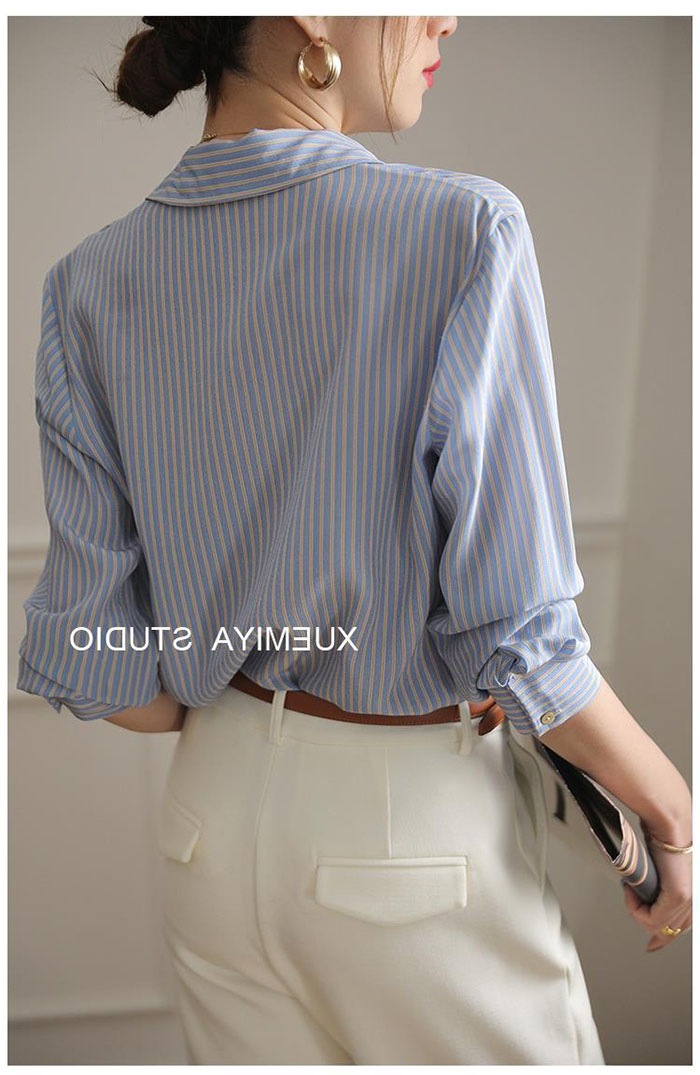 シャツ レディース ストライプ シフォン ブラウス 長袖 シャツ とろみブラウス スーツ インナー とろみシャツ オフィス ビジネス 事務服 制服 リクルート 着痩せ 着回し 通勤 OL おしゃれ ゆ
